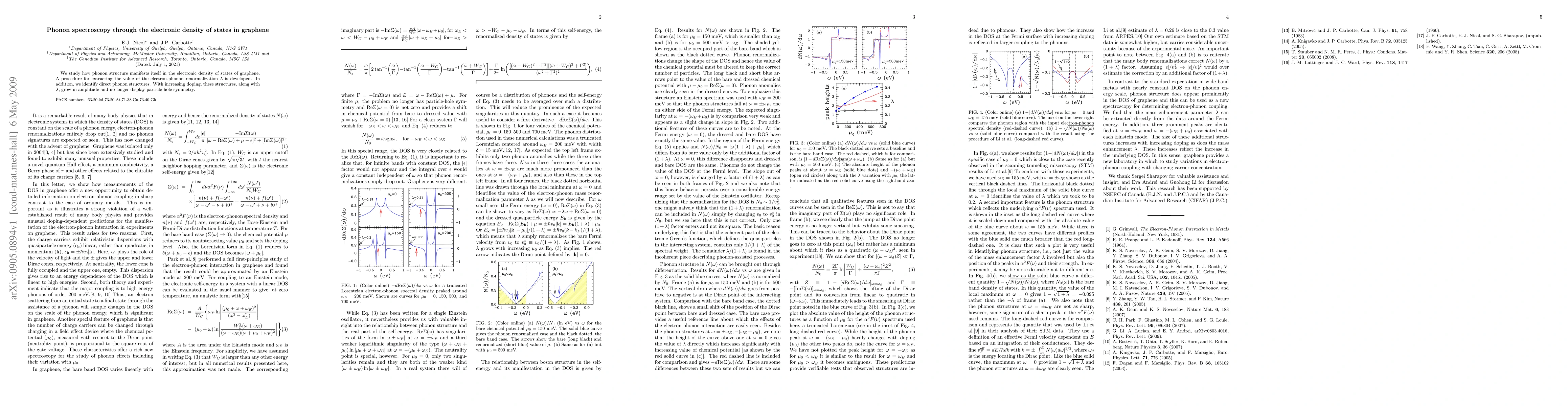 This paper investigates phonon effects on graphene's electronic density of states, developing a method to extract electron-phonon renormalization $\lambda$. It finds that phonon structures and $\lambda$ increase with doping, losing particle-hole symmetry.