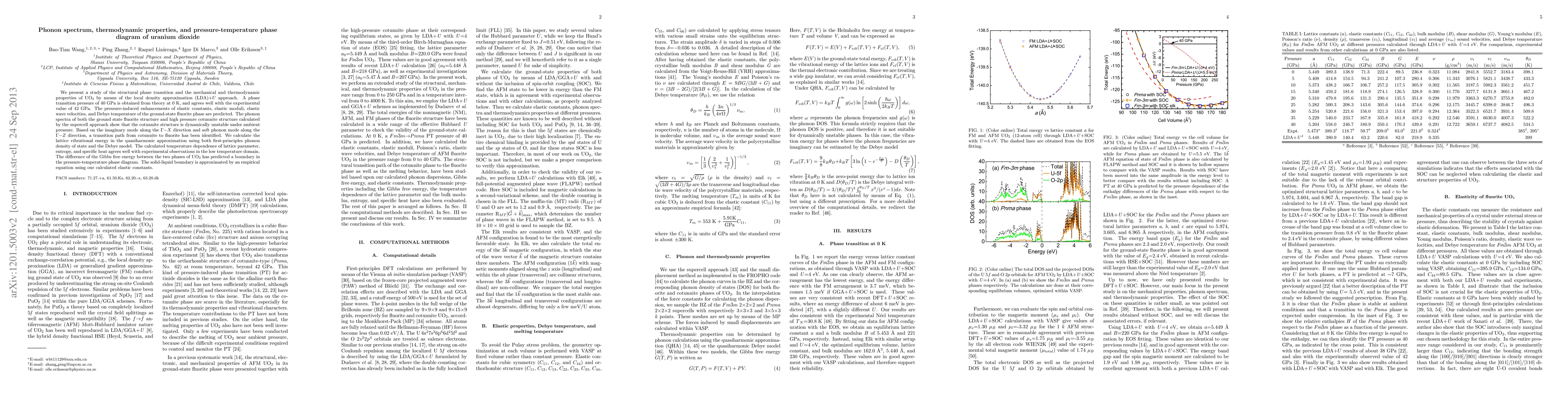 This study investigates the structural phase transition and thermodynamic properties of UO$_{2}$ using LDA$+U$ calculations, identifying a phase transition pressure of 40 GPa. The cotunnite structure is found to be dynamically unstable under ambient pressure, with a transition path to the fluorite phase identified. Thermodynamic properties and the pressure-temperature phase diagram are well-aligned with experimental observations.