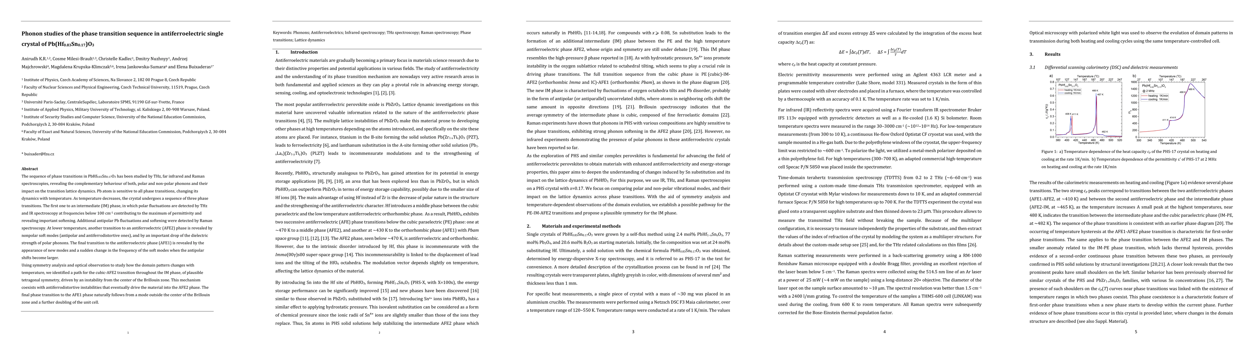 The sequence of phase transitions in PbHf0.83Sn0.17O3 has been studied by THz, far infrared and Raman spectroscopies, revealing the complementary behaviour of both, polar and non-polar phonons and their impact on the transition lattice dynamics. Pb atom is sensitive to all phase transitions, changing its dynamics with temperature. As temperature decreases, the crystal undergoes a sequence of three phase transitions. The first one to an intermediate (IM) phase, in which polar fluctuations are detected by THz and IR spectroscopy at frequencies below 100 cm-1 contributing to the maximum of permittivity and revealing important softening. Additional antipolar Pb fluctuations and softening were detected by Raman spectroscopy. At lower temperature, another transition to an antiferroelectric (AFE2) phase is revealed by nonpolar soft modes (antipolar and antiferrodistortive ones), and by an important drop of the dielectric strength of polar phonons. The final transition to the antiferroelectric phase (AFE1) is revealed by the appearance of new modes and a sudden change in the frequency of the soft modes when the antipolar shifts become larger. Using symmetry analysis and optical observation to study how the domain pattern changes with temperature, we identified a path for the cubic-AFE2 transition throughout the IM phase, of plausible tetragonal symmetry, driven by an instability from the center of the Brillouin zone. This mechanism coexists with antiferrodistortive instabilities that eventually drive the material into the AFE2 phase. The final phase transition to the AFE1 phase naturally follows from a mode outside the center of the Brillouin zone and a further doubling of the unit cell.