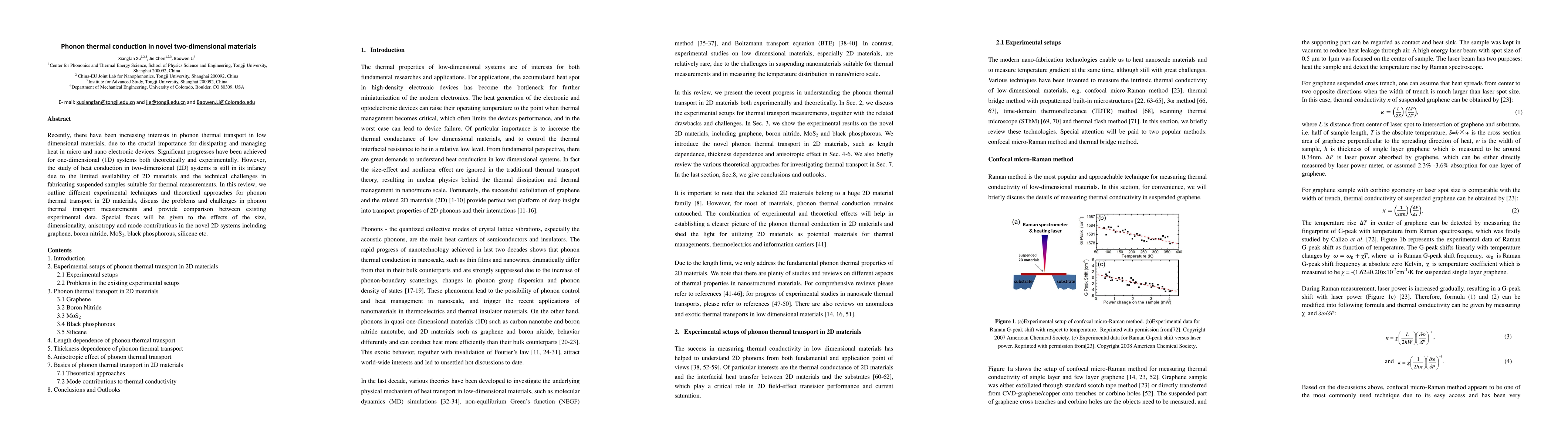 This review explores phonon thermal conduction in 2D materials like graphene and MoS2, discussing experimental techniques, theoretical approaches, and challenges in measuring heat dissipation. The study highlights the importance of size, dimensionality, anisotropy, and mode contributions in understanding phonon transport in these novel materials.
