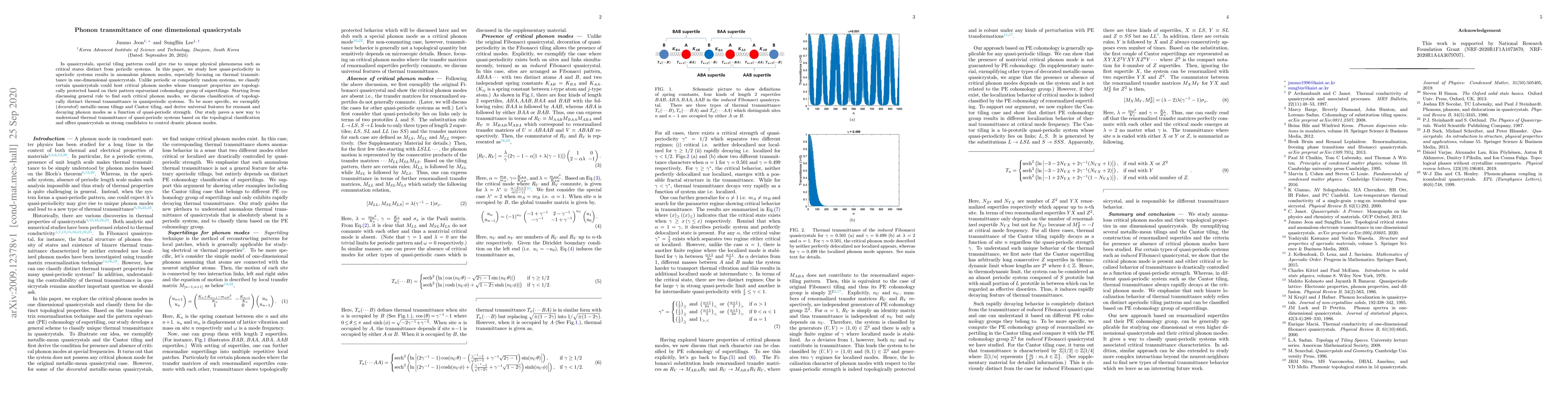 This paper investigates how quasi-periodicity in one-dimensional quasicrystals leads to unique phonon modes and topologically protected thermal transmittance, classifying these systems based on their pattern equivariant cohomology group and highlighting metallic-mean and Cantor tilings as examples.