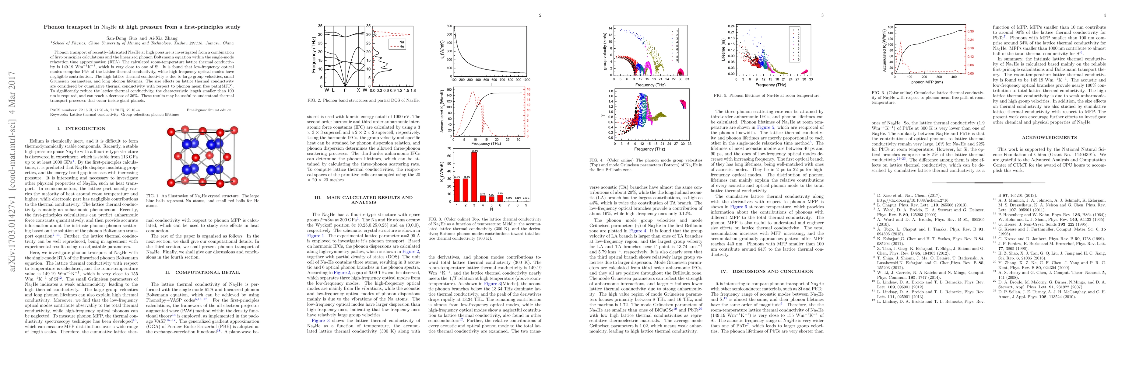 Phonon transport of recently-fabricated $\mathrm{Na_2He}$ at high pressure is investigated from a combination of first-principles calculations and the linearized phonon Boltzmann equation within the single-mode relaxation time approximation (RTA). The calculated room-temperature lattice thermal conductivity is 149.19 $\mathrm{W m^{-1} K^{-1}}$, which is very close to one of Si. It is found that low-frequency optical modes comprise 16\% of the lattice thermal conductivity, while high-frequency optical modes have negligible contribution. The high lattice thermal conductivity is due to large group velocities, small Gr$\mathrm{\ddot{u}}$neisen parameters, and long phonon lifetimes. The size effects on lattice thermal conductivity are considered by cumulative thermal conductivity with respect to phonon mean free path(MFP). To significantly reduce the lattice thermal conductivity, the characteristic length smaller than 100 nm is required, and can reach a decrease of 36\%. These results may be useful to understand thermal transport processes that occur inside giant planets.