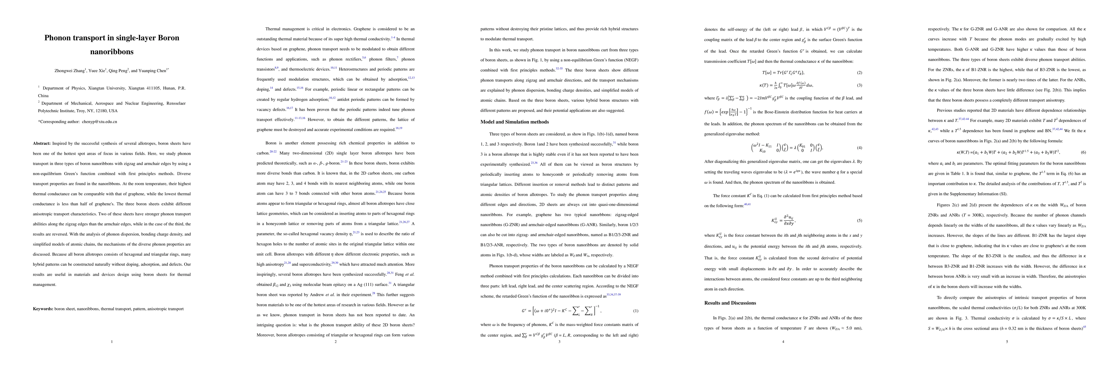 This paper investigates phonon transport in single-layer boron nanoribbons with zigzag and armchair edges, revealing diverse thermal conductance properties. The highest thermal conductance of some boron nanoribbons is comparable to graphene, while others exhibit significantly lower values, highlighting anisotropic transport characteristics.