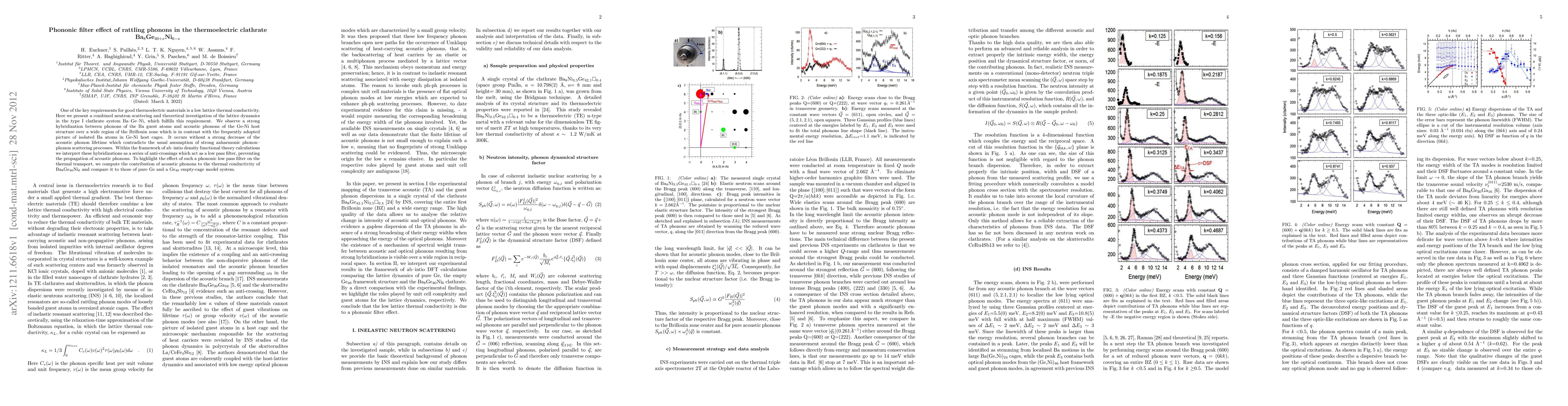This study reveals that in Ba-Ge-Ni clathrates, hybrid vibrations between guest atoms and the host structure create a phononic filter that reduces heat-carrying vibrations, aiding thermoelectric efficiency. Using neutron scattering and theoretical calculations, the researchers show these interactions prevent heat-conducting phonons from traveling freely, without causing typical scattering losses.