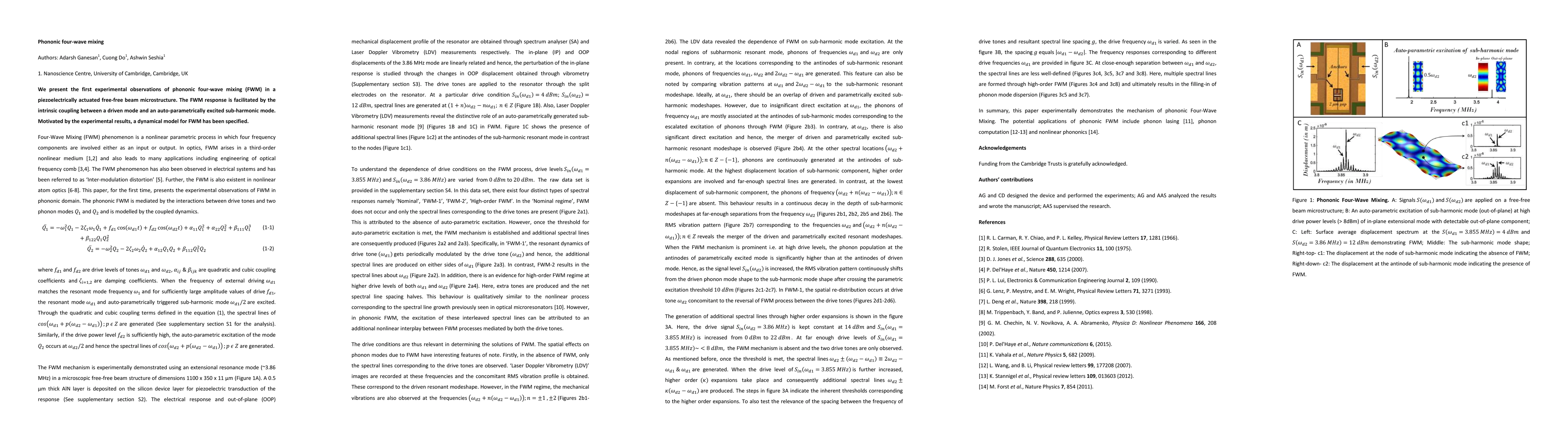 This work is novel as it demonstrates phononic FWM for the first time, paving the way for new research in non-linear acoustics at the microscale.