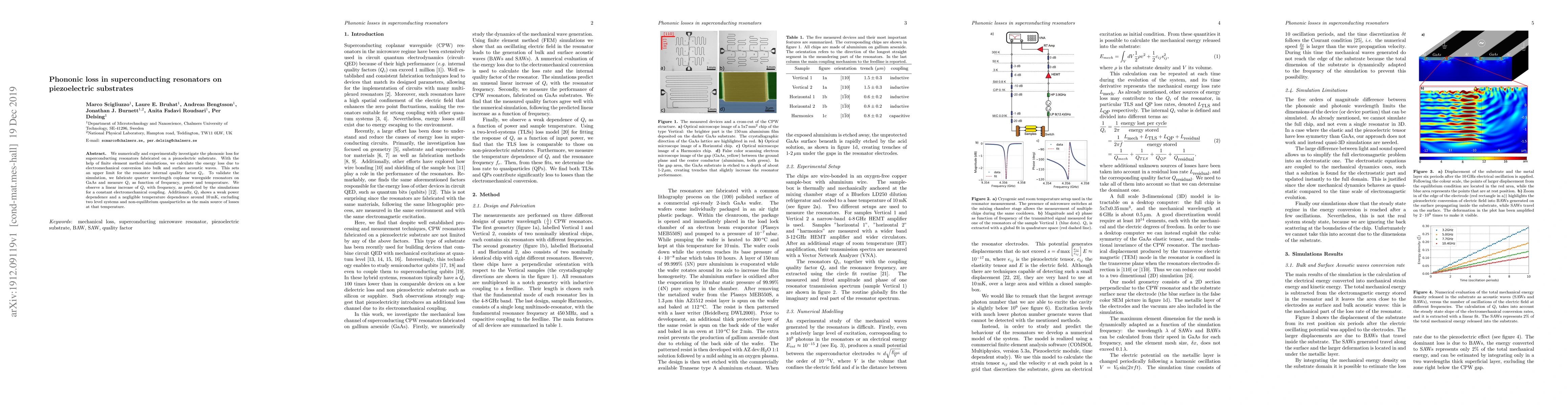 This study investigates phononic loss in superconducting resonators on piezoelectric substrates via numerical simulations and experiments. The simulations predict energy loss due to electromechanical conversion into acoustic waves, setting an upper limit for the resonator's internal quality factor $Q_i$. Experimental results on GaAs resonators confirm a linear increase in $Q_i$ with frequency and negligible temperature dependence, ruling out two-level systems and non-equilibrium quasiparticles as primary loss sources.