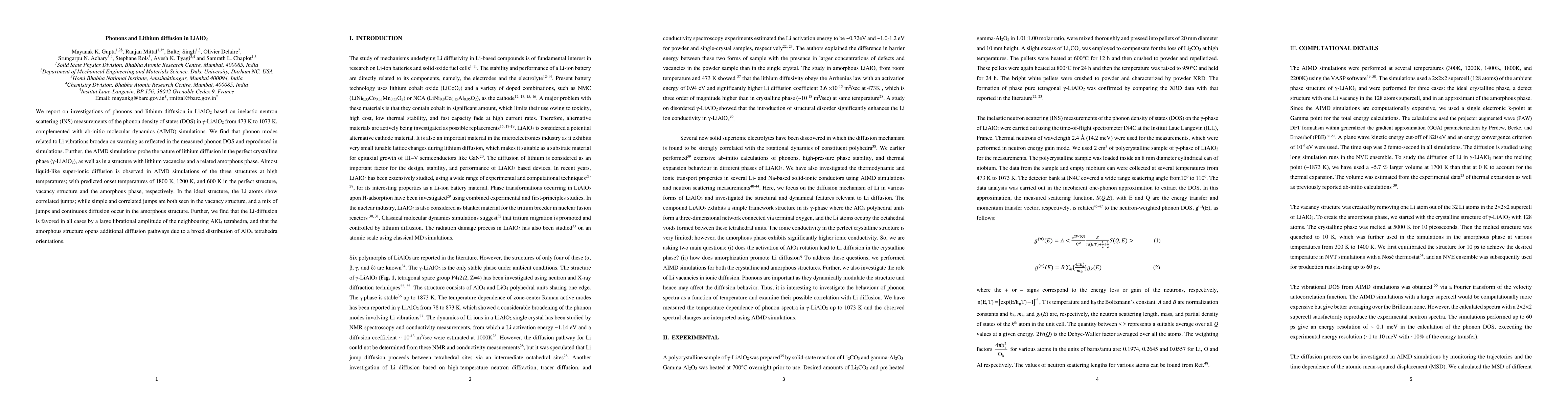 Researchers investigated lithium diffusion in LiAlO2 using inelastic neutron scattering and ab-initio molecular dynamics simulations. They found that lithium diffusion is favored when neighboring aluminum tetrahedra have a large librational amplitude and that an amorphous structure opens additional diffusion pathways.