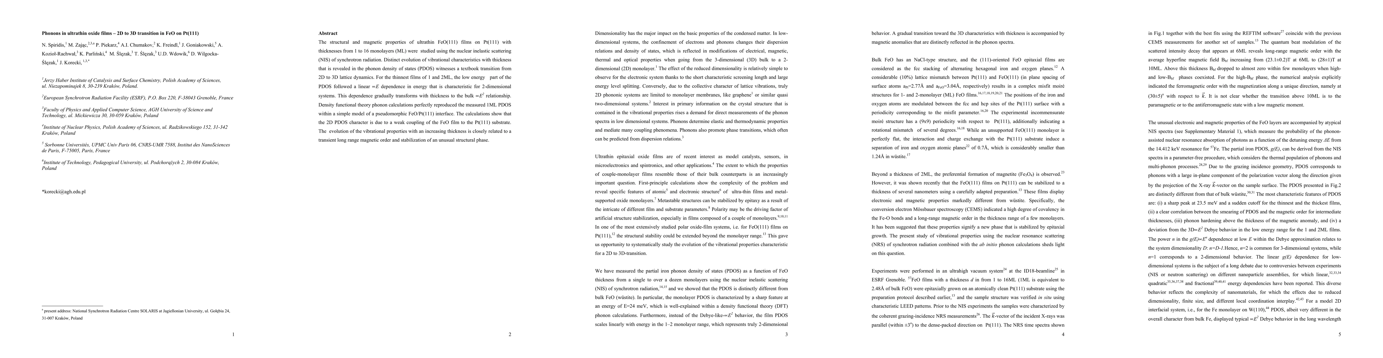 This study investigates the phonon dynamics in ultrathin FeO films on Pt(111) using nuclear inelastic scattering, revealing a transition from 2D to 3D phonon behavior with increasing film thickness. The thinnest films exhibit 2D phonon characteristics, which evolve to 3D behavior as the film thickness increases, correlating with changes in magnetic order and structural phases.