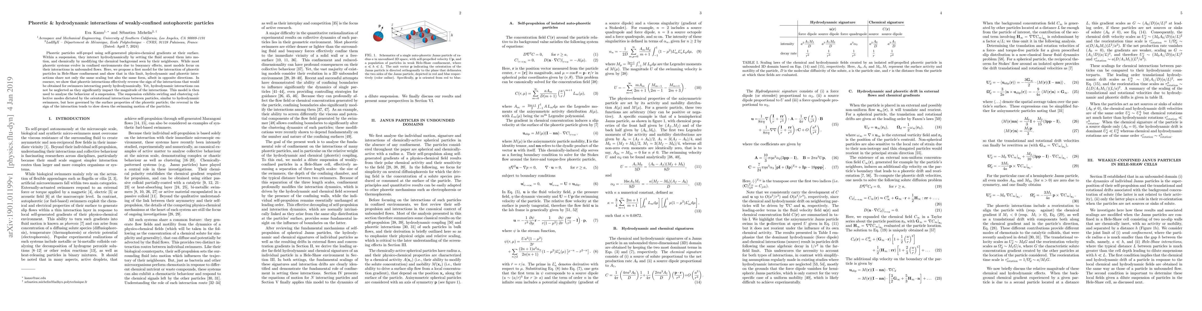 This paper develops a model for phoretic particles in weakly-confined Hele-Shaw flows, demonstrating that phoretic and hydrodynamic interactions share the same form but opposite directions. The model reveals that phoretic interactions can reverse the sign of interactions seen in purely hydrodynamic swimmers, though hydrodynamic effects still significantly influence the overall interaction magnitude.
