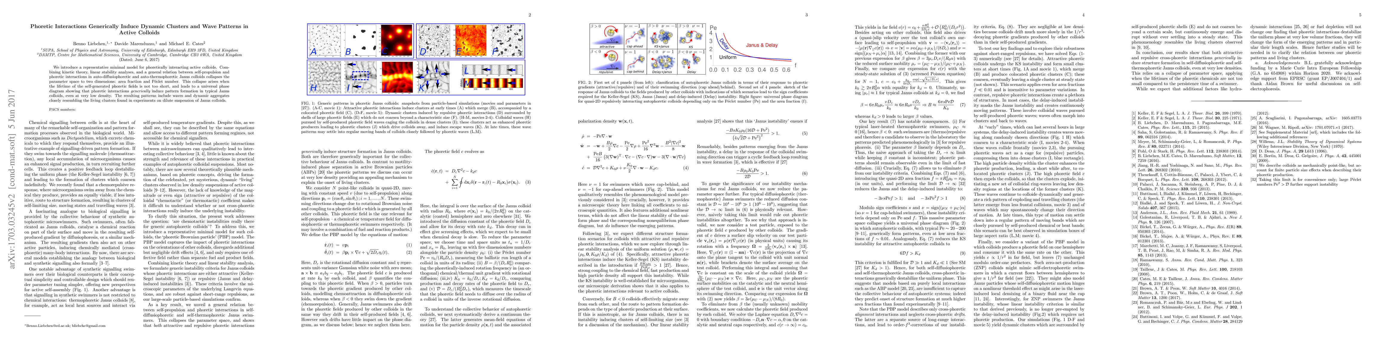 This paper presents a minimal model demonstrating that phoretic interactions in active colloids lead to dynamic cluster and wave patterns, even at low densities. The model reduces the parameter space to two dimensions, revealing a universal phase diagram that predicts pattern formation due to these interactions.