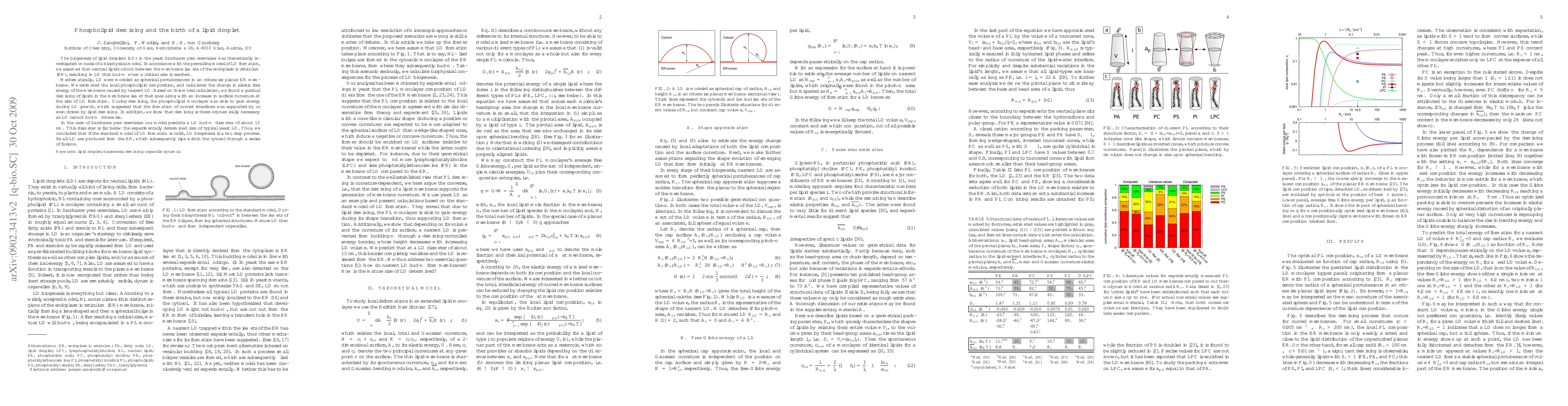 The biogenesis of lipid droplets (LD) in the yeast Saccharomyces cerevisiae was theoretically investigated on basis of a biophysical model. In accordance with the prevailing model of LD formation, we assumed that neutral lipids oil-out between the membrane leaflets of the endoplasmic reticulum (ER), resulting in LD that bud-off when a critical size is reached. Mathematically, LD were modeled as spherical protuberances in an otherwise planar ER membrane. We estimated the local phospholipid composition, and calculated the change in elastic free energy of the membrane caused by nascent LD. Based on this model calculation, we found a gradual demixing of lipids in the membrane leaflet that goes along with an increase in surface curvature at the site of LD formation. During demixing, the phospholipid monolayer was able to gain energy during LD growth, which suggested that the formation of curved interfaces was supported by or even driven by lipid demixing. In addition, we show that demixing is thermodynamically necessary as LD cannot bud-off otherwise. In the case of Saccharomyces cerevisiae our model predicts a LD bud-off diameter of about 13 nm. This diameter is far below the experimentally determined size of typical yeast LD. Thus, we concluded that if the standard model of LD formation is valid, LD biogenesis is a two step process. Small LD are produced from the ER, which subsequently ripe within the cytosol through a series of fusions.