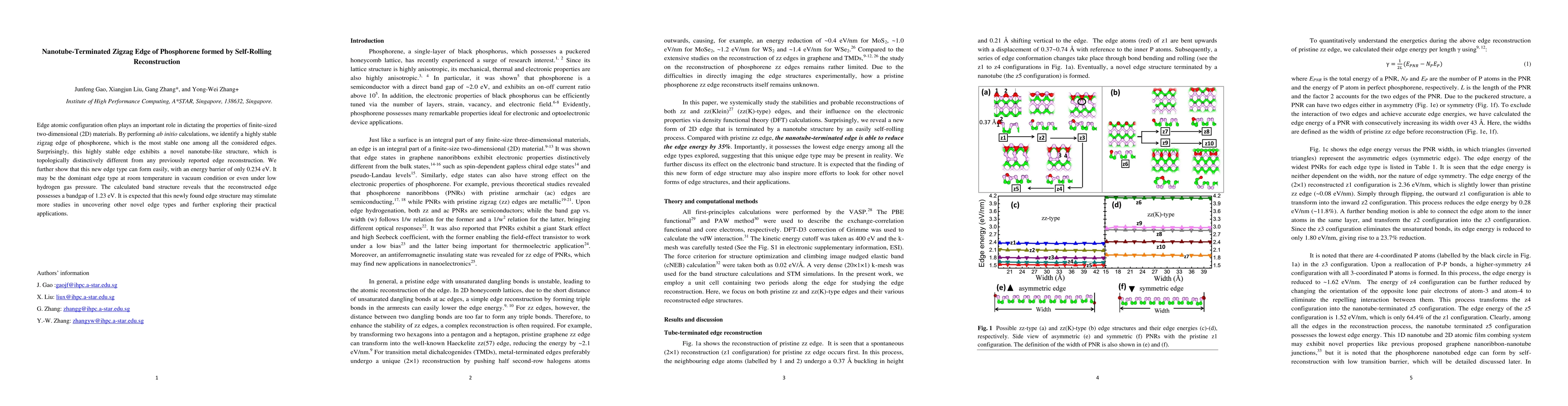 This study identifies a highly stable zigzag edge reconstruction in phosphorene with a novel nanotube-like structure, showing low formation energy. The reconstructed edge exhibits a 1.23 eV bandgap, suggesting potential for new practical applications in 2D materials.
