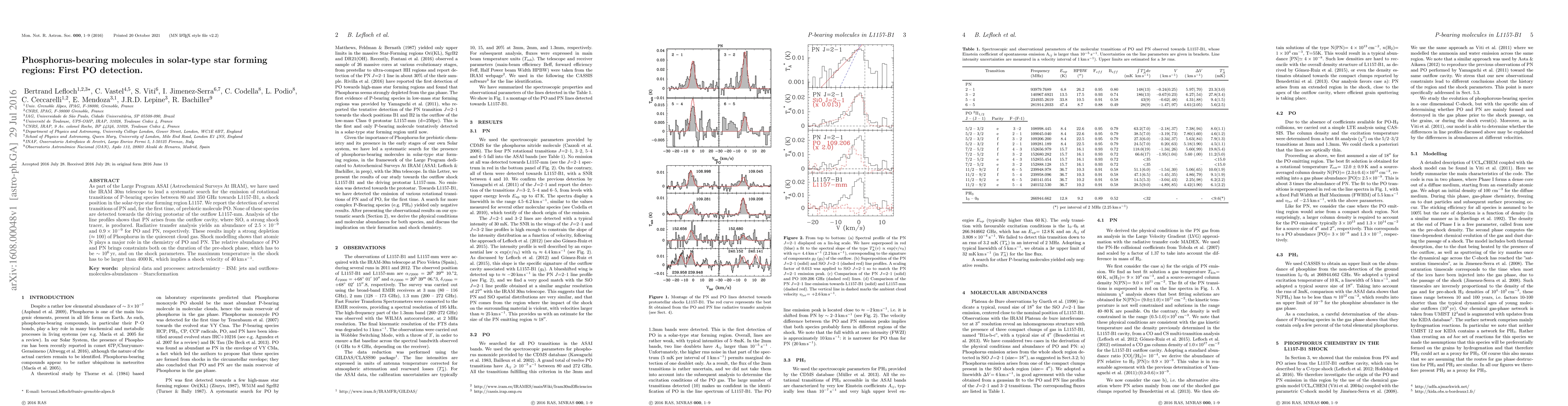 Scientists detected phosphorus-bearing molecules in a solar-type star forming region for the first time, revealing a strong depletion of phosphorus in the cloud gas and constraints on shock parameters.