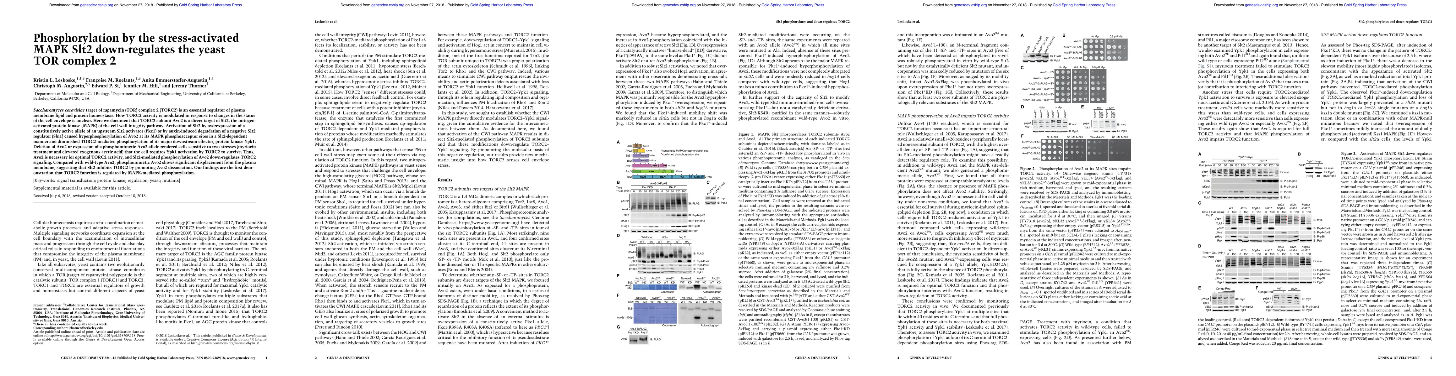 This study reveals that the yeast Slt2 MAPK phosphorylates TORC2 subunit Avo2, thereby down-regulating TORC2 activity and leading to reduced phosphorylation of its downstream effector Ypk1. This phosphorylation is crucial for cellular responses to specific stresses, indicating a regulatory link between the cell wall integrity pathway and TORC2 signaling.