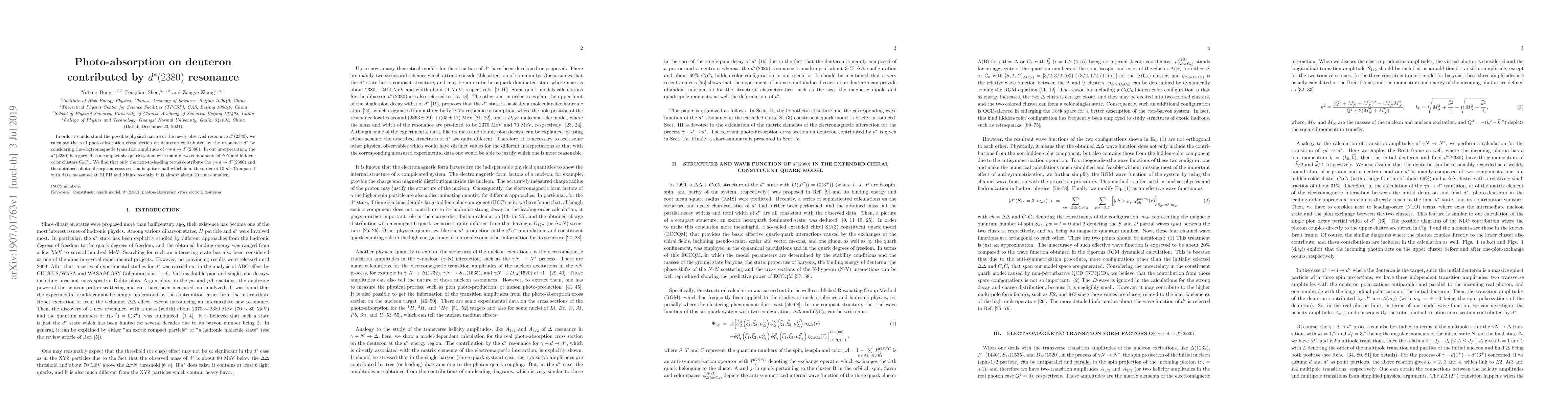 This paper investigates the photo-absorption cross section on deuteron due to the $d^*(2380)$ resonance, interpreting it as a six-quark system primarily composed of $\Delta\Delta$ and hidden-color clusters. The calculated cross section is small, around 10 nanobarns, which is nearly 20 times smaller than recent experimental measurements.