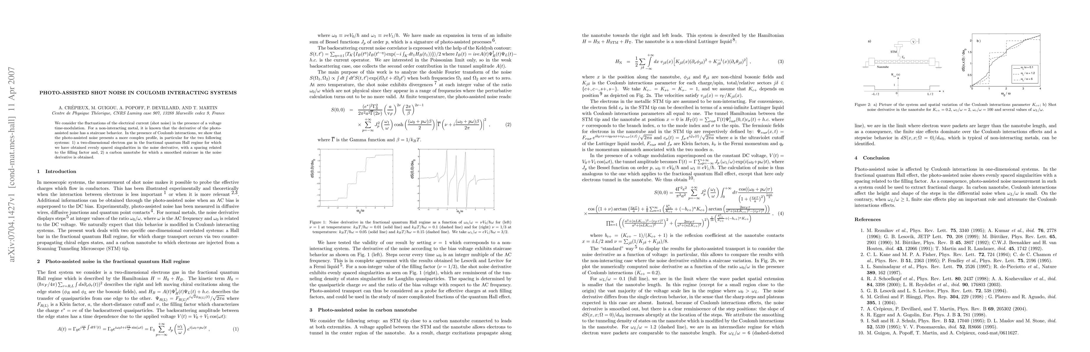 We consider the fluctuations of the electrical current (shot noise) in the presence of a voltage time-modulation. For a non-interacting metal, it is known that the derivative of the photo-assisted noise has a staircase behavior. In the presence of Coulomb interactions, we show that the photo-assisted noise presents a more complex profile, in particular for the two following systems: 1) a two-dimensional electron gas in the fractional quantum Hall regime for which we have obtained evenly spaced singularities in the noise derivative, with a spacing related to the filling factor and, 2) a carbon nanotube for which a smoothed staircase in the noise derivative is obtained.