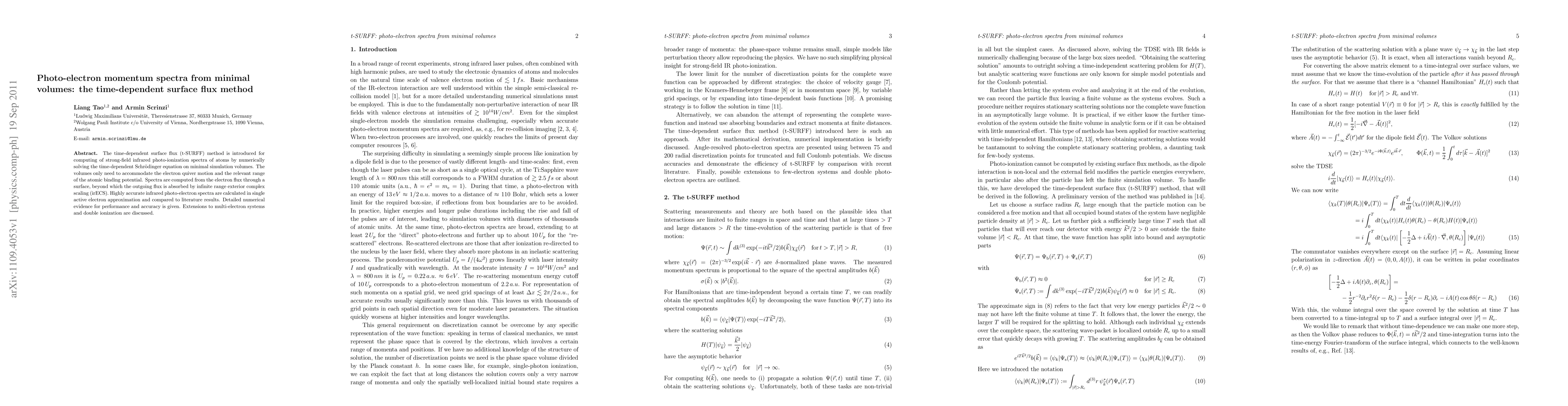 A new method, time-dependent surface flux (t-SURFF), is introduced to compute strong-field infrared photo-ionization spectra of atoms with high accuracy. This method accurately simulates photo-electron momentum spectra from minimal volumes.