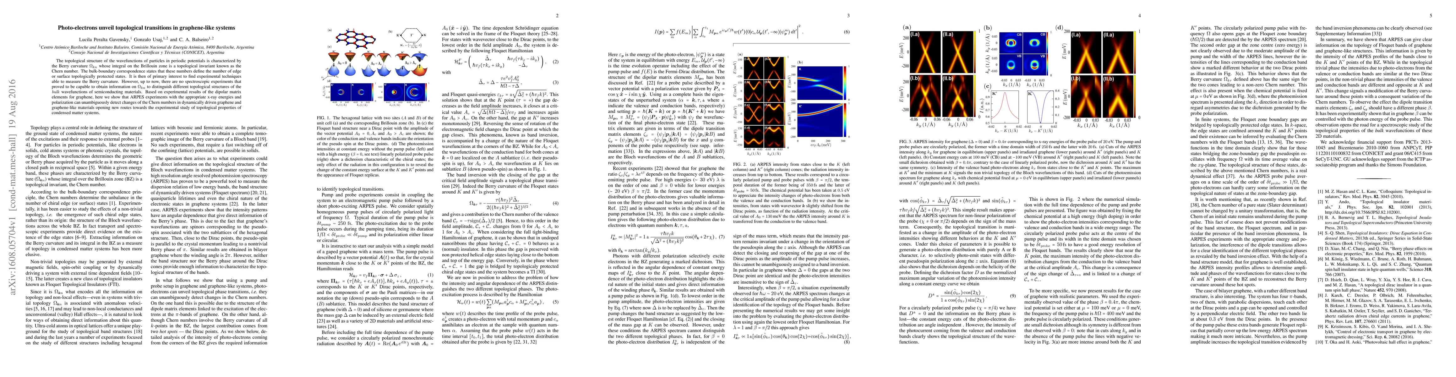 The topological structure of the wavefunctions of particles in periodic potentials is characterized by the Berry curvature $\Omega_{kn}$ whose integral on the Brillouin zone is a topological invariant known as the Chern number. The bulk-boundary correspondence states that these numbers define the number of edge or surface topologically protected states. It is then of primary interest to find experimental techniques able to measure the Berry curvature. However, up to now, there are no spectroscopic experiments that proved to be capable to obtain information on $\Omega_{kn}$ to distinguish different topological structures of the $\it{bulk}$ wavefunctions of semiconducting materials. Based on experimental results of the dipolar matrix elements for graphene, here we show that ARPES experiments with the appropriate x-ray energies and polarization can unambiguously detect changes of the Chern numbers in dynamically driven graphene and graphene-like materials opening new routes towards the experimental study of topological properties of condensed matter systems.