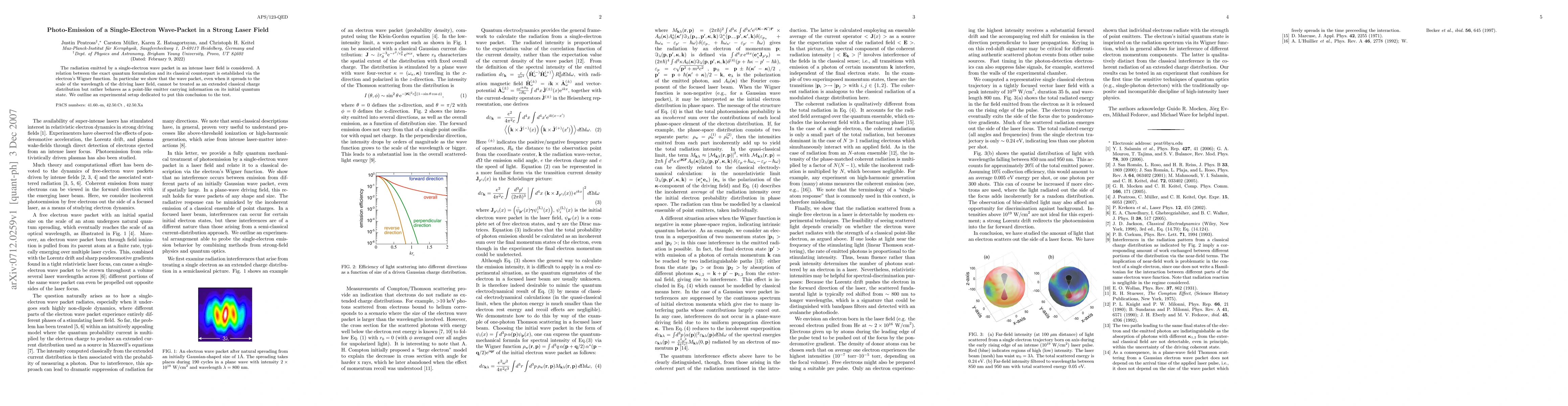 The radiation emitted by a single-electron wave packet in an intense laser field is considered. A relation between the exact quantum formulation and its classical counterpart is established via the electron's Wigner function. In particular we show that the wave packet, even when it spreads to the scale of the wavelength of the driving laser field, cannot be treated as an extended classical charge distribution but rather behaves as a point-like emitter carrying information on its initial quantum state. We outline an experimental setup dedicated to put this conclusion to the test.