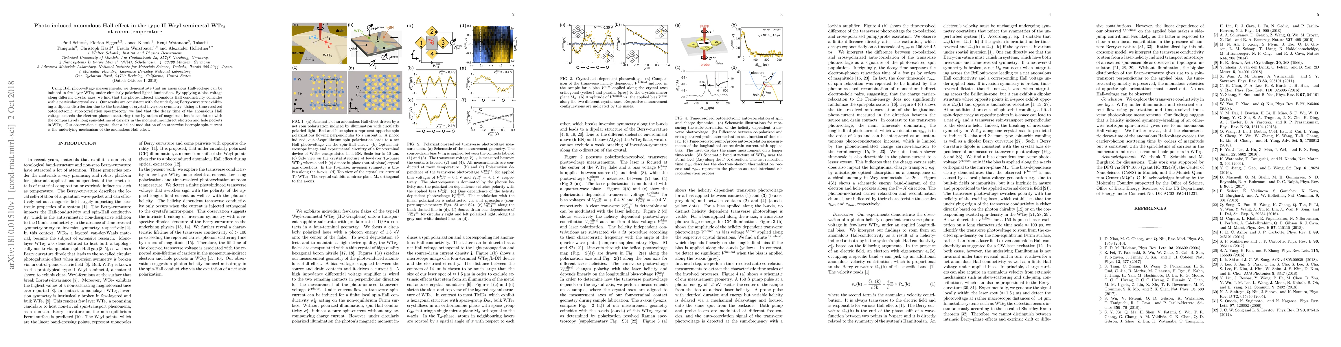 Using Hall photovoltage measurements, we demonstrate that an anomalous Hall-voltage can be induced in few layer WTe2 under circularly polarized light illumination. By applying a bias voltage along different crystal axes, we find that the photo-induced anomalous Hall conductivity coincides with a particular crystal axis. Our results are consistent with the underlying Berry-curvature exhibiting a dipolar distribution due to the breaking of crystal inversion symmetry. Using a time-resolved optoelectronic auto-correlation spectroscopy, we find that the decay time of the anomalous Hall voltage exceeds the electron-phonon scattering time by orders of magnitude but is consistent with the comparatively long spin-lifetime of carriers in the momentum-indirect electron and hole pockets in WTe2. Our observation suggests, that a helical modulation of an otherwise isotropic spin-current is the underlying mechanism of the anomalous Hall effect.