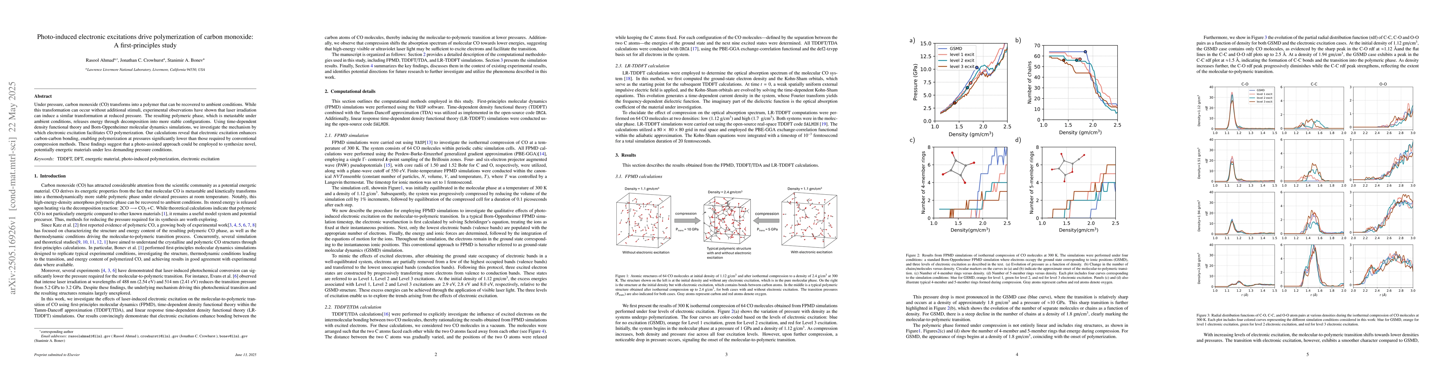 The study employs time-dependent density functional theory and Born-Oppenheimer molecular dynamics simulations to investigate the mechanism by which electronic excitation facilitates CO polymerization.