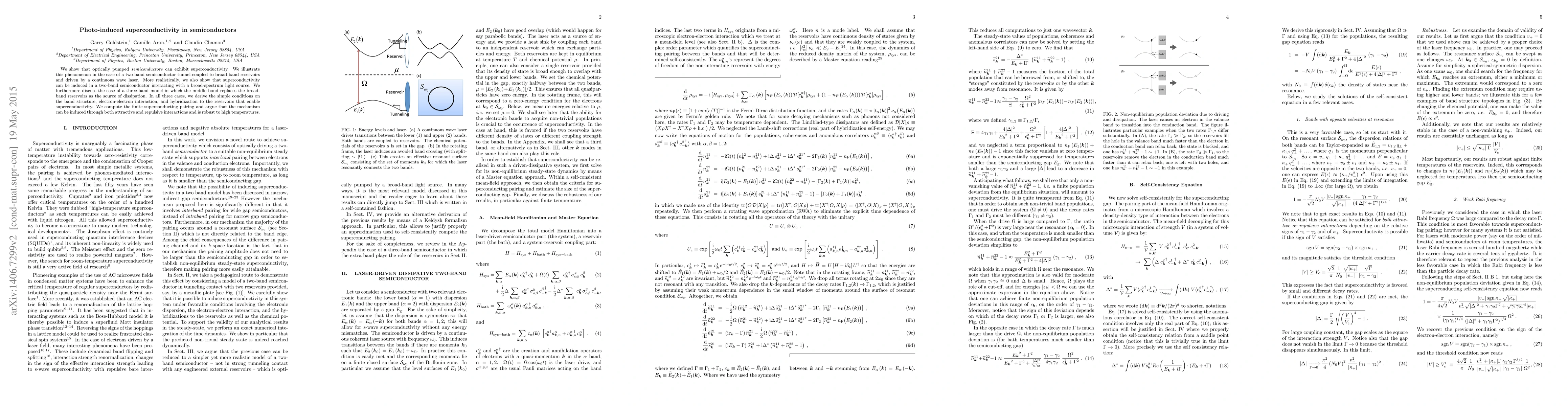 This research demonstrates that superconductivity can be induced in semiconductors using light, even at high temperatures. The study illustrates this with two-band and three-band semiconductor models, showing that both attractive and repulsive electron-electron interactions can facilitate this phenomenon.