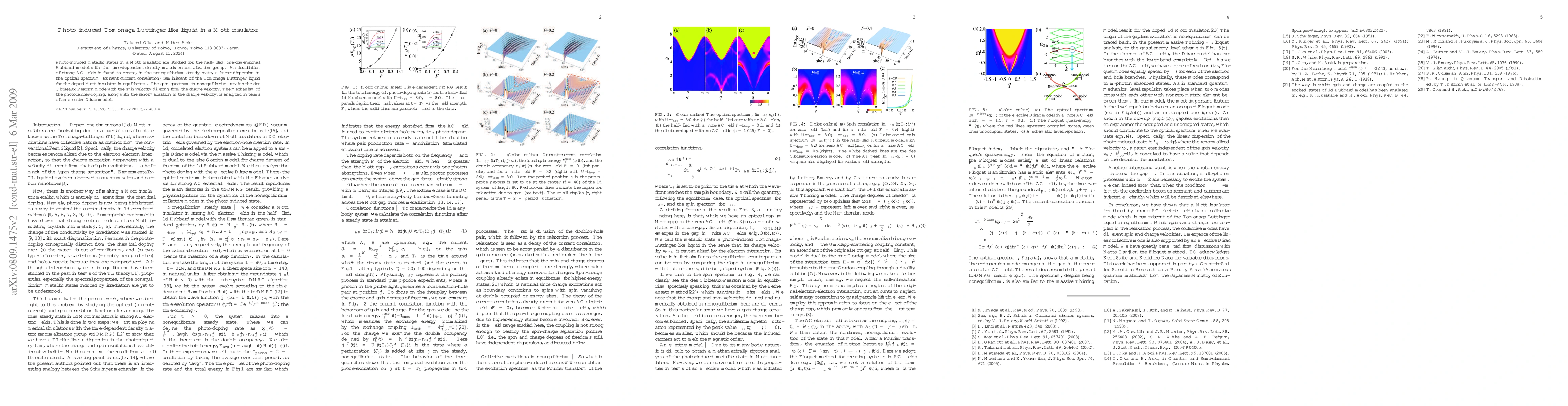 Photo-induced metallic states in a Mott insulator are studied for the half-filled, one-dimensional Hubbard model with the time-dependent density matrix renormalization group. An irradiation of strong AC field is found to create a linear dispersion in the optical spectrum (current-current correlation) in the nonequilibrium steady state reminiscent of the Tomonaga-Luttinger liquid for the doped Mott insulator in equilibrium. The spin spectrum in nonequilibrium retains the des Cloizeaux-Pearson mode with the spin velocity differing from the charge velocity. The mechanism of the photocarrier-doping, along with the renormalization in the charge velocity, is analyzed in terms of an effective Dirac model.