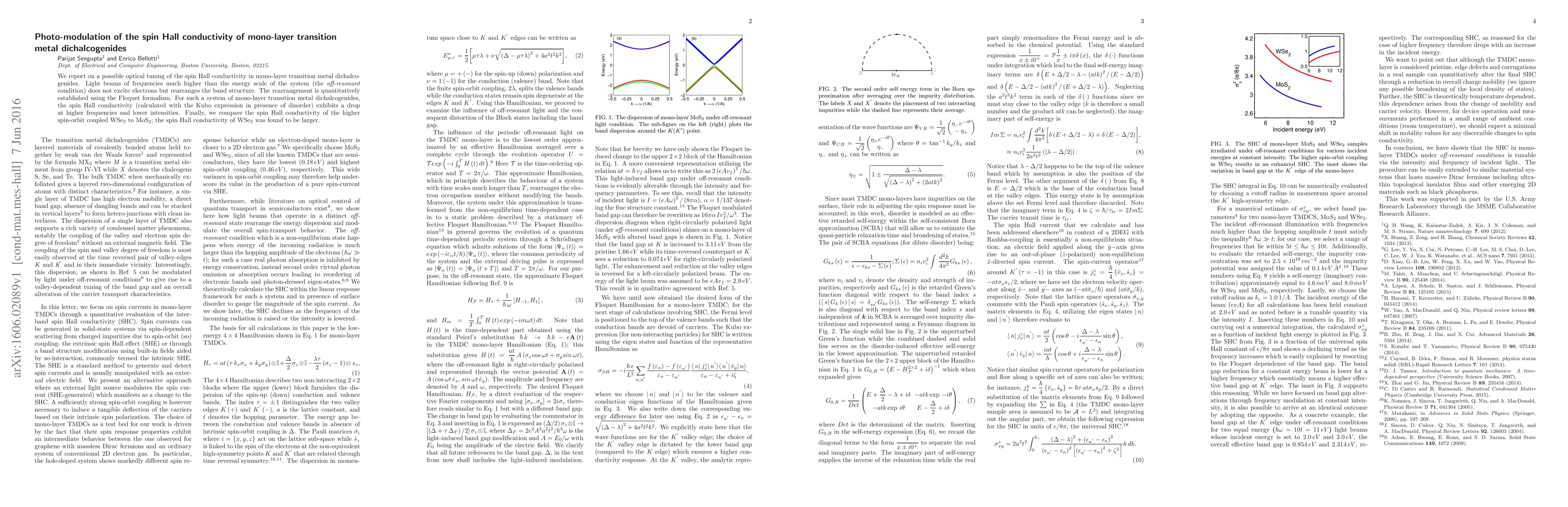 Researchers discovered that high-frequency light beams can alter the spin Hall conductivity of mono-layer transition metal dichalcogenides, increasing its value in certain compounds like WSe2.