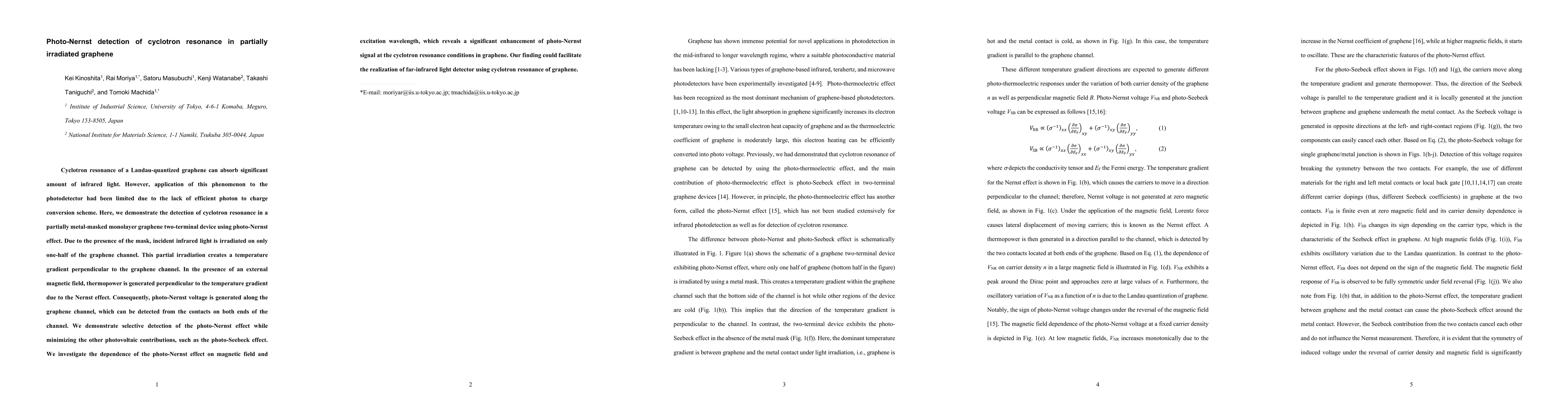 Researchers demonstrate a new method to detect cyclotron resonance in graphene using photo-Nernst effect, enabling detection of far-infrared light with potential applications for light detectors.