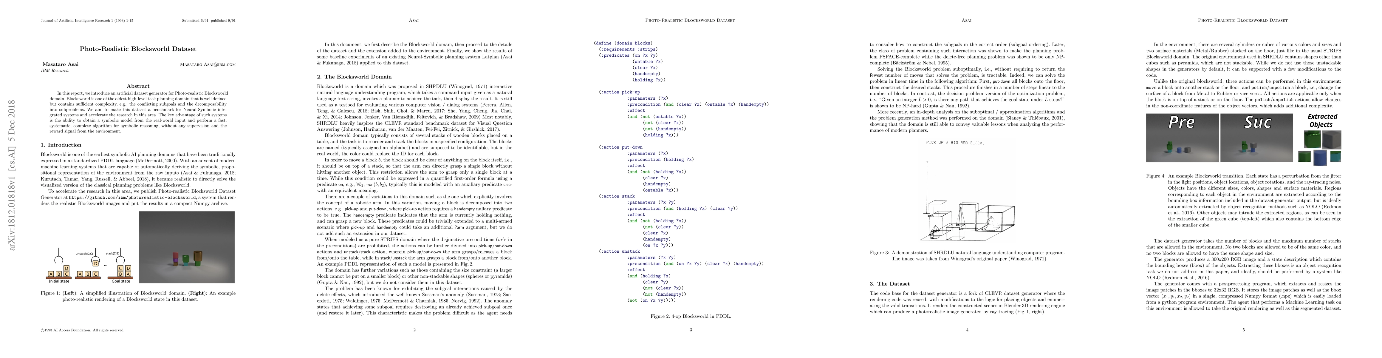 Researchers created a dataset generator for Photo-realistic Blocksworld, aiming to accelerate Neural-Symbolic integrated systems research. The dataset offers a benchmark for symbolic reasoning without human supervision.