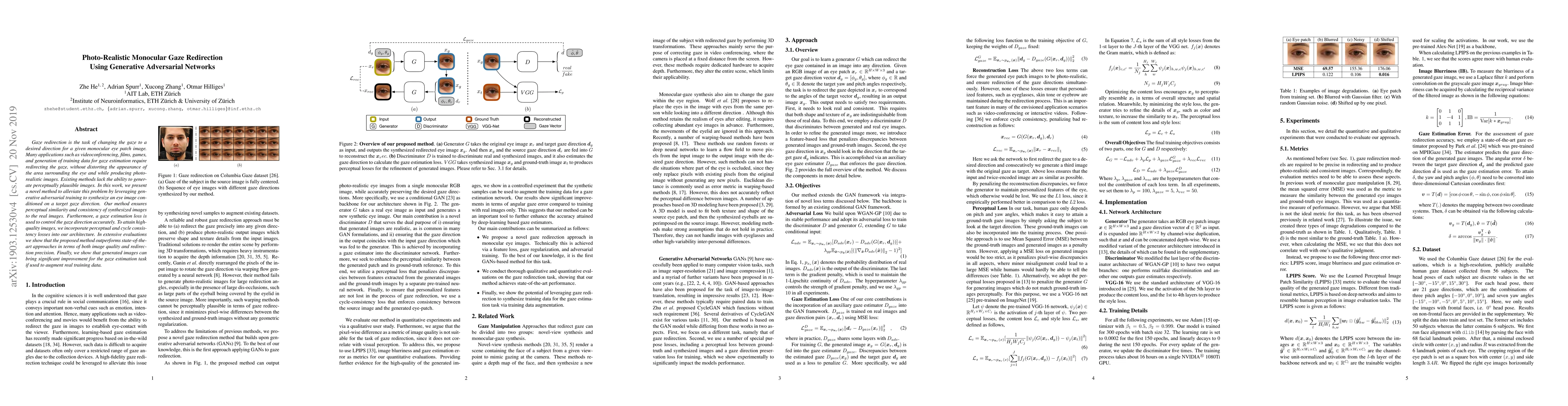 This paper proposes a generative adversarial network (GAN) method for photo-realistic monocular gaze redirection, achieving high-quality and precise gaze changes while maintaining surrounding appearance consistency. The method incorporates perceptual and cycle consistency losses, outperforming existing techniques and enhancing gaze estimation tasks when used for data augmentation.