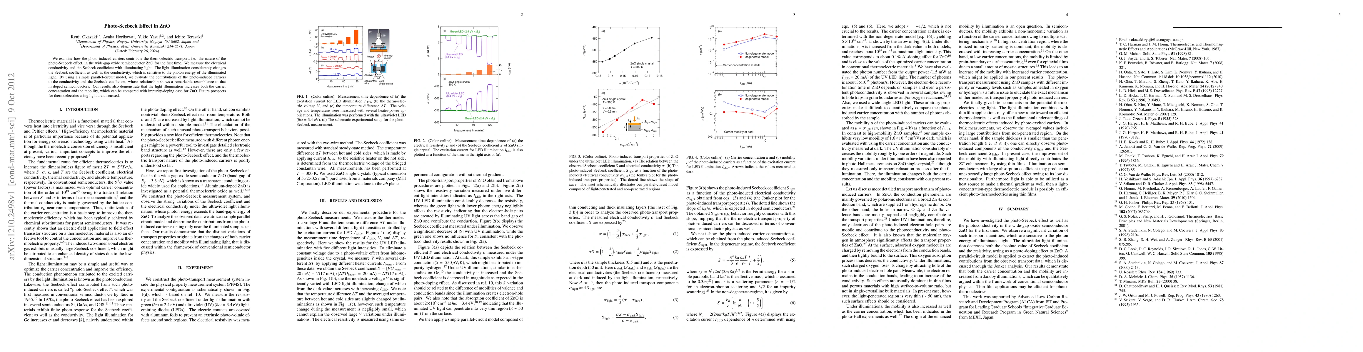 The research examines the photo-Seebeck effect in ZnO, measuring electrical conductivity and Seebeck coefficient under light illumination. A parallel-circuit model is used to evaluate photo-induced carrier contributions.