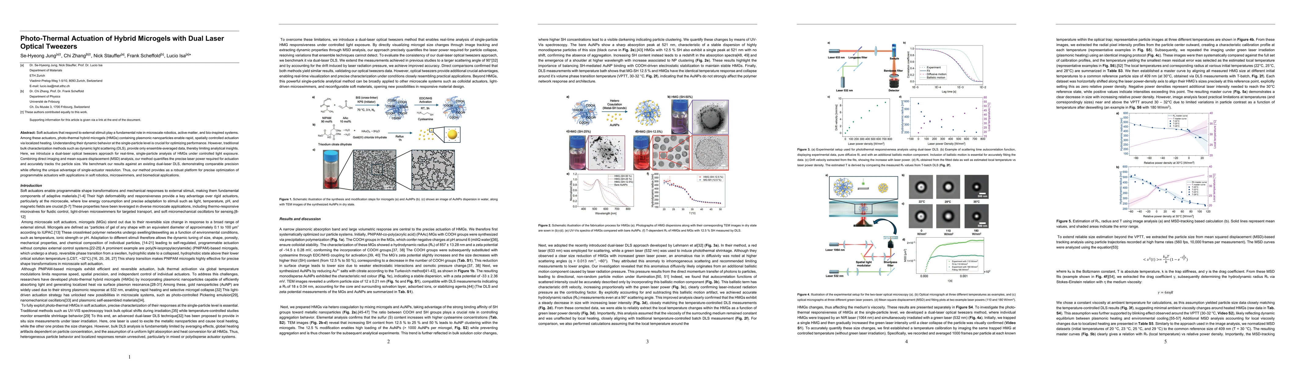 Soft actuators that respond to external stimuli play a fundamental role in microscale robotics, active matter, and bio-inspired systems. Among these actuators, photo-thermal hybrid microgels (HMGs) containing plasmonic nanoparticles enable rapid, spatially controlled actuation via localized heating. Understanding their dynamic behavior at the single-particle level is crucial for optimizing performance. However, traditional bulk characterization methods such as dynamic light scattering (DLS), provide only ensemble-averaged data, thereby limiting analytical insights. Here, we introduce a dual-laser optical tweezers approach for real-time, single-particle analysis of HMGs under controlled light exposure. Combining direct imaging and mean-square displacement (MSD) analysis, our method quantifies the precise laser power required for actuation and accurately tracks the particle size. We benchmark our results against an existing dual-laser DLS, demonstrating comparable precision while offering the unique advantage of single-actuator resolution. Thus, our method provides as a robust platform for precise optimization of programmable actuators with applications in soft robotics, microswimmers, and biomedical applications.
