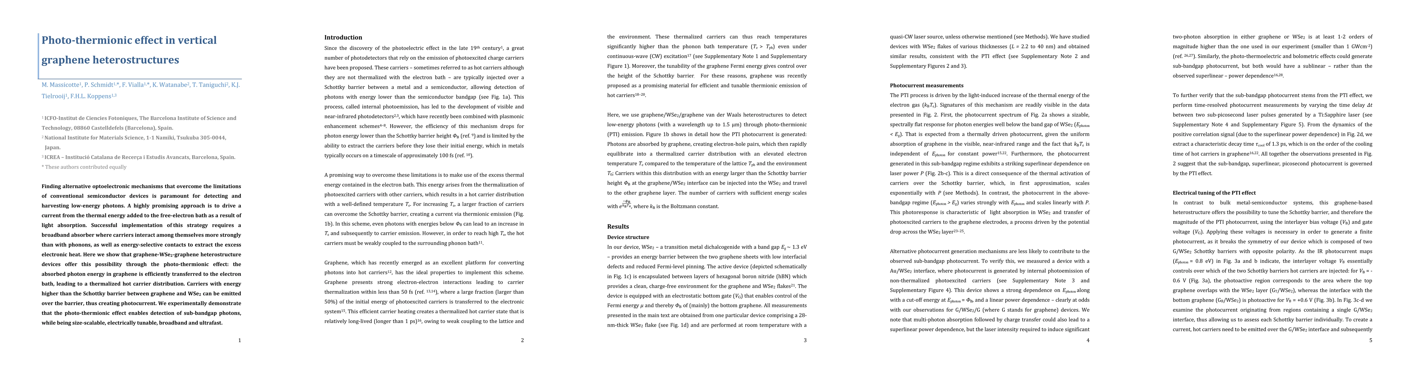 Researchers demonstrate a new optoelectronic mechanism that uses graphene-WSe2-graphene heterostructures to detect low-energy photons through the photo-thermionic effect, enabling ultrafast, size-scalable, and electrically tunable detection of sub-bandgap photons.