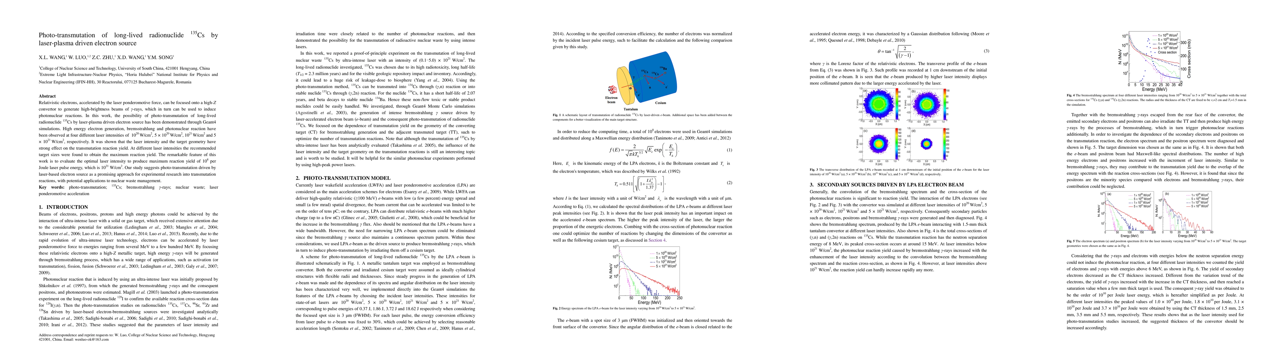 This research demonstrates the photo-transmutation of Cs-135 using relativistic electrons accelerated by laser-plasma interactions, generating high-energy gamma rays for photonuclear reactions. Geant4 simulations show that optimal laser intensity of 10^21 W/cm^2 maximizes reaction yield, suggesting a promising method for nuclear waste management.