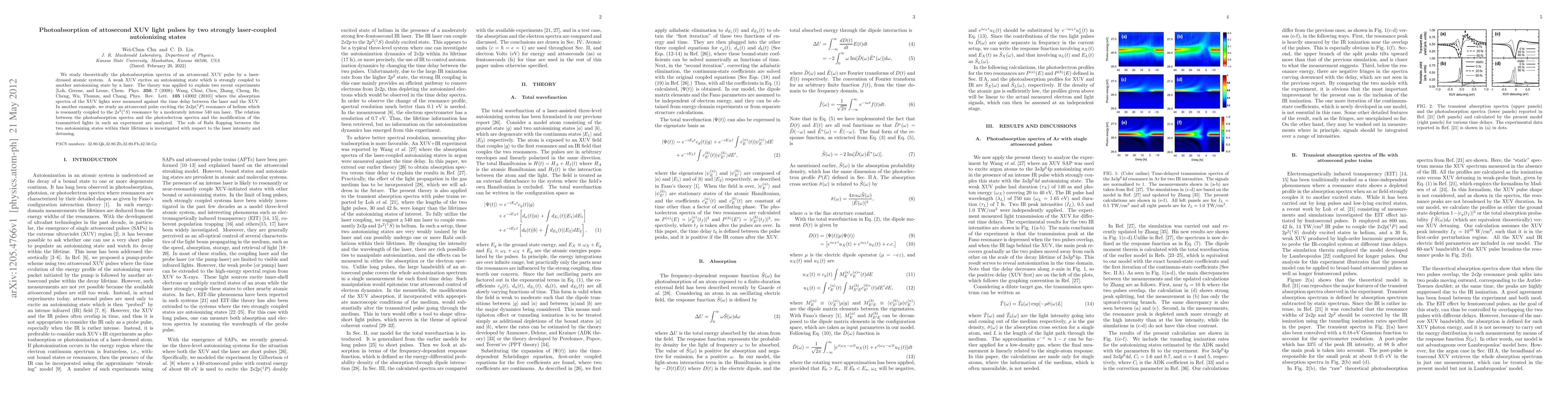 We study theoretically the photoabsorption spectra of an attosecond XUV pulse by a laserdressed atomic system. A weak XUV excites an autoionizing state which is strongly coupled to another autoionizing state by a laser. The theory was applied to explain two recent experiments [Loh, Greene, and Leone, Chem. Phys. 350, 7 (2008); Wang, Chini, Chen, Zhang, Cheng, He, Cheng, Wu, Thumm, and Chang, Phys. Rev. Lett. 105 143002 (2010)] where the absorption spectra of the XUV lights were measured against the time delay between the laser and the XUV. In another example, we study an attosecond pulse exciting the 2s2p(1P) resonance of helium which is resonantly coupled to the 2s2(1S) resonance by a moderately intense 540 nm laser. The relation between the photoabsorption spectra and the photoelectron spectra and the modification of the transmitted lights in such an experiment are analyzed. The role of Rabi flopping between the two autoionizing states within their lifetimes is investigated with respect to the laser intensity and detuning.