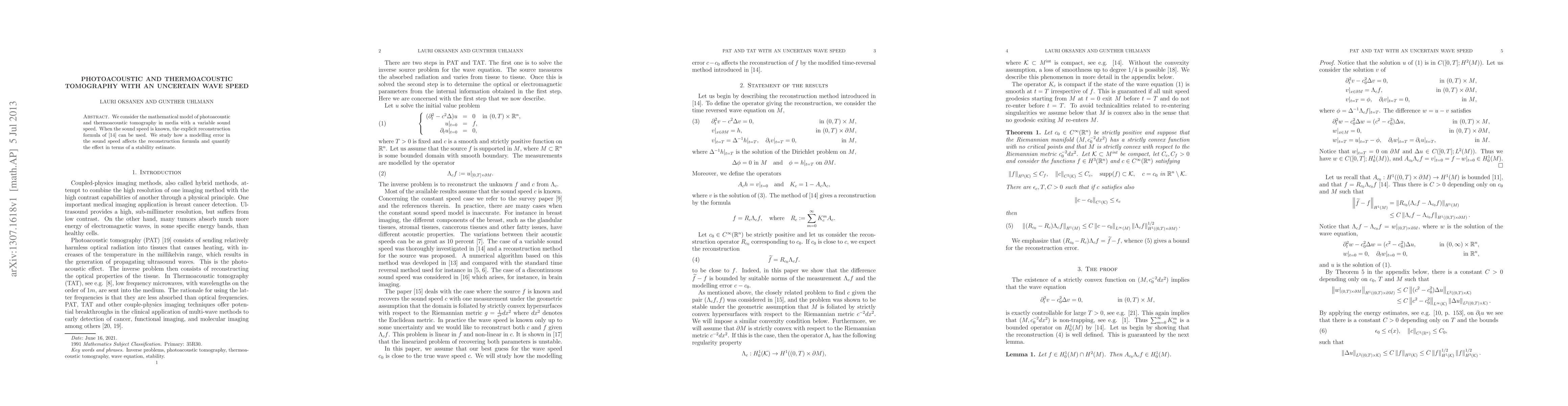 This paper investigates the mathematical model for photoacoustic and thermoacoustic tomography in media with variable sound speed, examining how modelling errors in the sound speed impact reconstruction accuracy and providing a stability estimate to quantify these effects.
