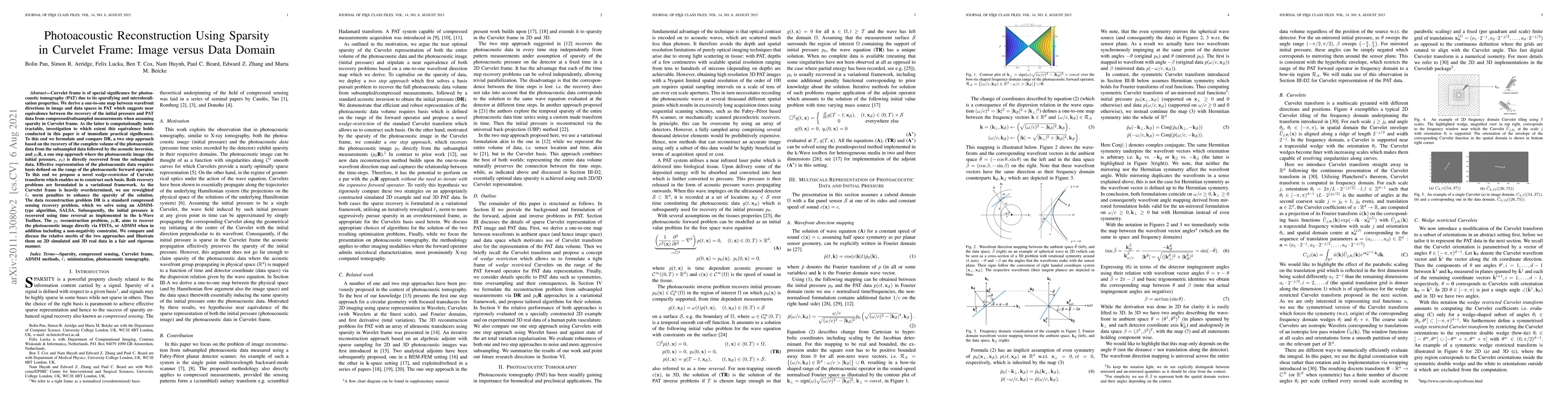 Curvelet frame is of special significance for photoacoustic tomography (PAT) due to its sparsifying and microlocalisation properties. We derive a one-to-one map between wavefront directions in image and data spaces in PAT which suggests near equivalence between the recovery of the initial pressure and PAT data from compressed/subsampled measurements when assuming sparsity in Curvelet frame. As the latter is computationally more tractable, investigation to which extent this equivalence holds conducted in this paper is of immediate practical significance. To this end we formulate and compare DR, a two step approach based on the recovery of the complete volume of the photoacoustic data from the subsampled data followed by the acoustic inversion, and p0R, a one step approach where the photoacoustic image (the initial pressure, p0) is directly recovered from the subsampled data. Effective representation of the photoacoustic data requires basis defined on the range of the photoacoustic forward operator. To this end we propose a novel wedge-restriction of Curvelet transform which enables us to construct such basis. Both recovery problems are formulated in a variational framework. As the Curvelet frame is heavily overdetermined, we use reweighted l1 norm penalties to enhance the sparsity of the solution. The data reconstruction problem DR is a standard compressed sensing recovery problem, which we solve using an ADMMtype algorithm, SALSA. Subsequently, the initial pressure is recovered using time reversal as implemented in the k-Wave Toolbox. The p0 reconstruction problem, p0R, aims to recover the photoacoustic image directly via FISTA, or ADMM when in addition including a non-negativity constraint. We compare and discuss the relative merits of the two approaches and illustrate them on 2D simulated and 3D real data in a fair and rigorous manner.