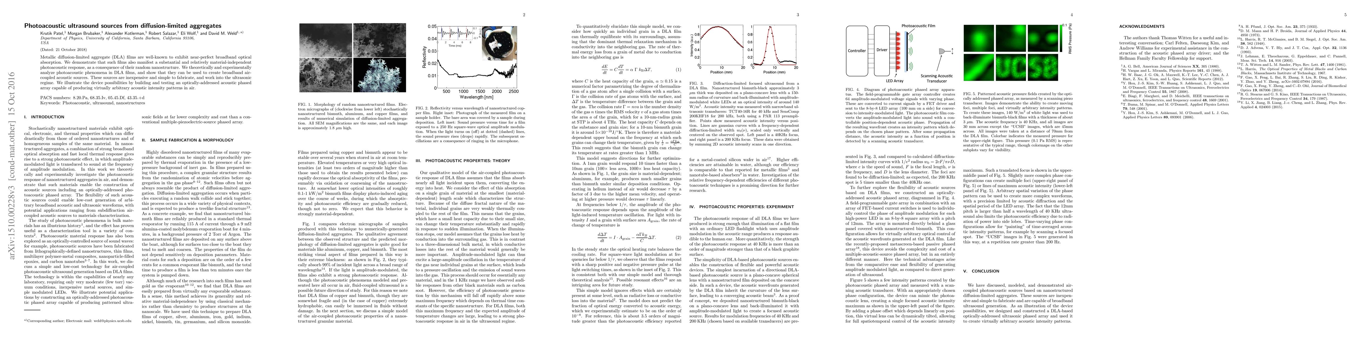 Metallic diffusion-limited aggregate (DLA) films are well-known to exhibit near-perfect broadband optical absorption. We demonstrate that such films also manifest a substantial and relatively material-independent photoacoustic response, as a consequence of their random nanostructure. We theoretically and experimentally analyze photoacoustic phenomena in DLA films, and show that they can be used to create broadband air- coupled acoustic sources. These sources are inexpensive and simple to fabricate, and work into the ultrasonic regime. We illustrate the device possibilities by building and testing an optically-addressed acoustic phased array capable of producing virtually arbitrary acoustic intensity patterns in air.
