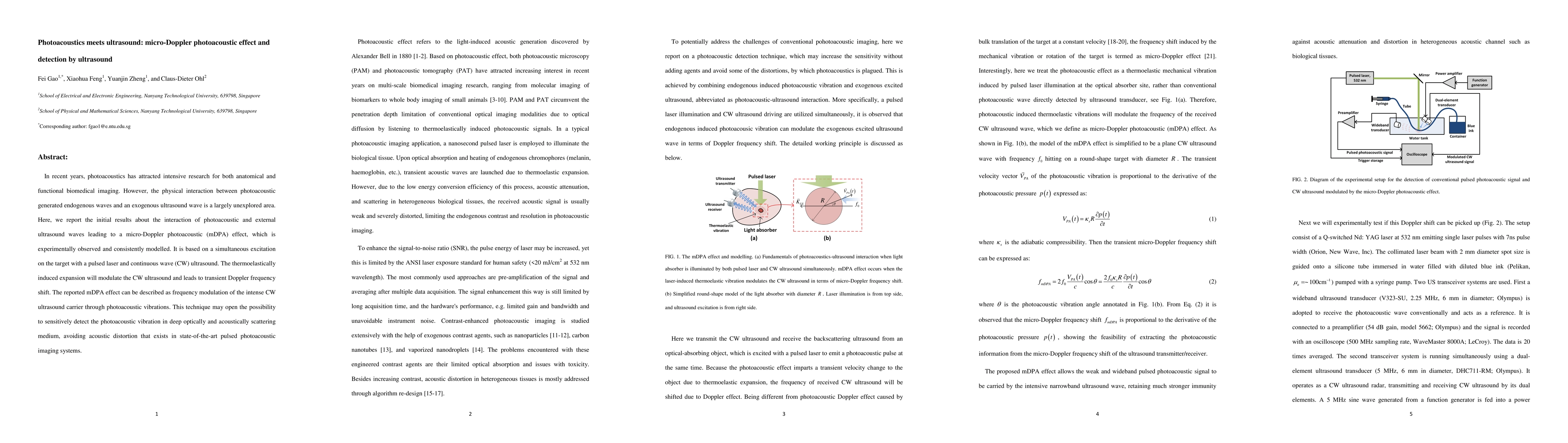 This paper explores the interaction between photoacoustic waves and continuous wave ultrasound, revealing a micro-Doppler photoacoustic (mDPA) effect. The mDPA effect, observed and modeled, involves modulation of continuous wave ultrasound by photoacoustic vibrations induced by pulsed laser and CW ultrasound, potentially enhancing detection in deep scattering media.