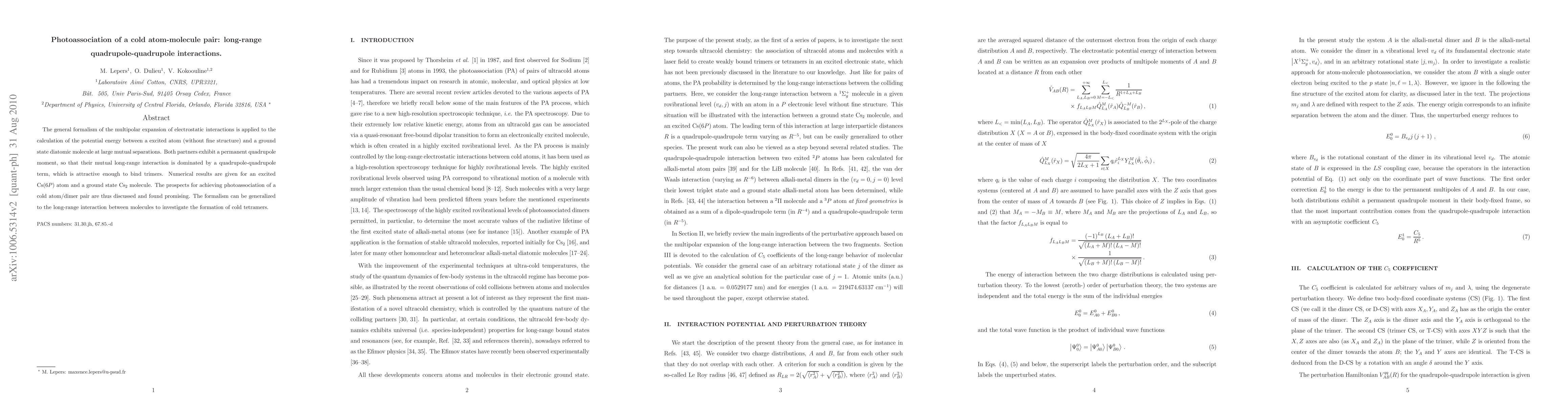 The research applies the multipolar expansion to calculate the long-range interaction energy between a diatomic molecule in its electronic ground state and an arbitrary rovibrational level, and an excited atom. The method considers the permanent quadrupole moments of both partners, enabling the computation of their long-range quadrupole-quadrupole interaction.