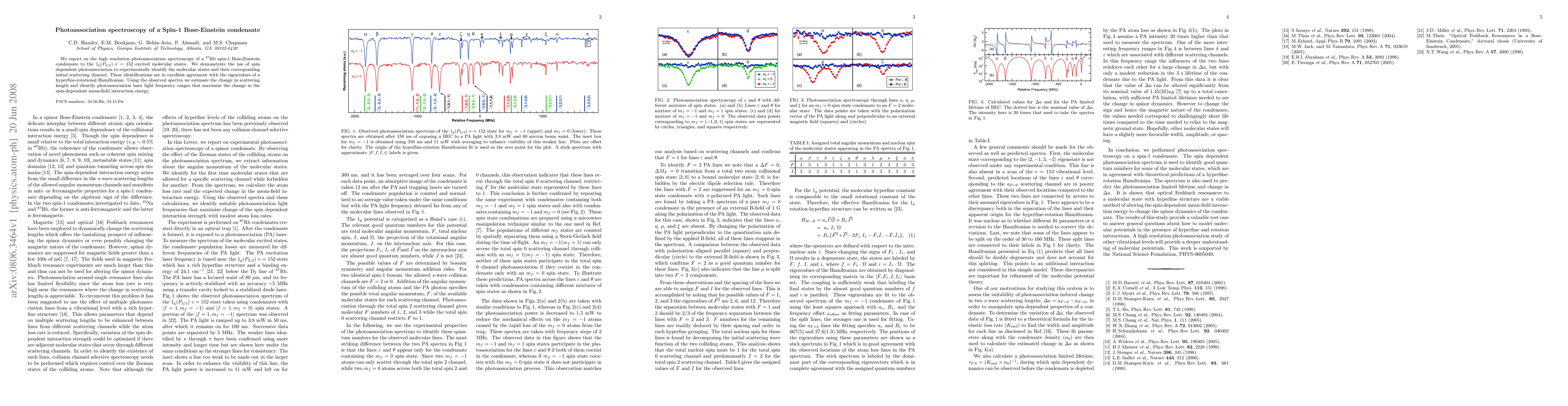 This paper uses high-resolution photoassociation spectroscopy to study a spin-1 Bose-Einstein condensate of $^{87}$Rb, identifying excited molecular states and their initial scattering channels. The results align well with hyperfine-rotational Hamiltonian eigenvalues and help estimate changes in scattering length.