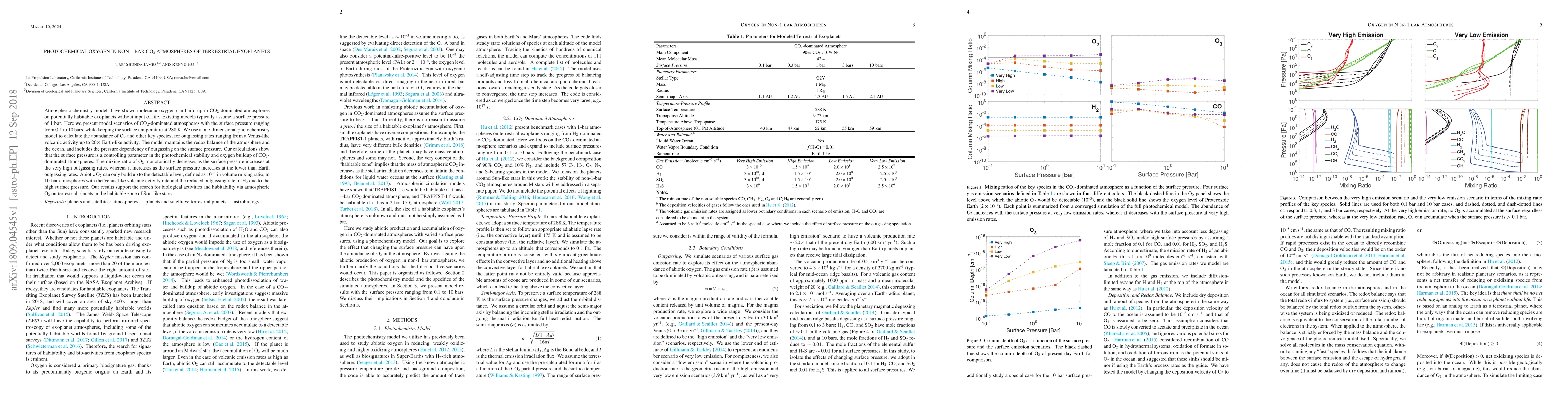 This study explores the photochemical stability and oxygen buildup in CO2-dominated atmospheres of terrestrial exoplanets under varying surface pressures (0.1 to 10 bars) and outgassing rates. The findings indicate that surface pressure significantly influences O2 abundance, suggesting that abiotic O2 can only reach detectable levels in high-pressure (10-bar) atmospheres with specific outgassing conditions.