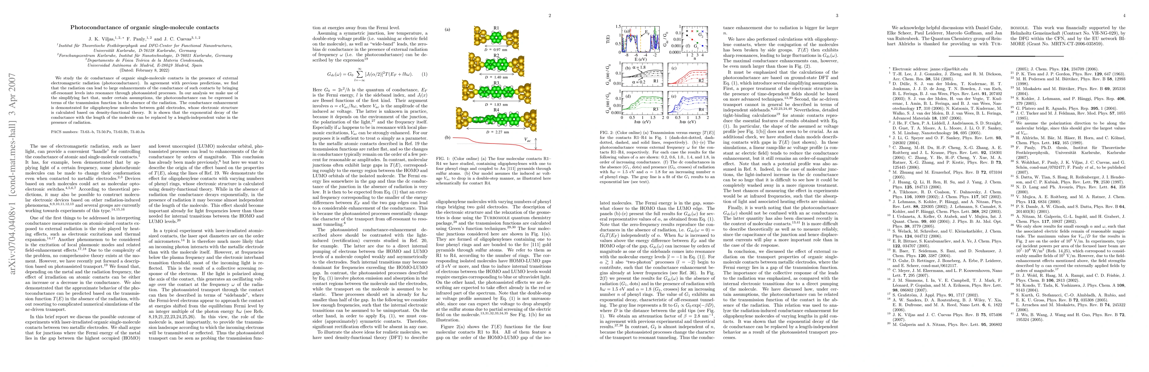 This study investigates the photoconductance of organic single-molecule contacts, demonstrating significant conductance enhancements due to external electromagnetic radiation. The research shows that radiation can bring off-resonant levels into resonance, and the conductance decay with molecule length becomes length-independent under these conditions, as demonstrated using oligophenylene molecules between gold electrodes.