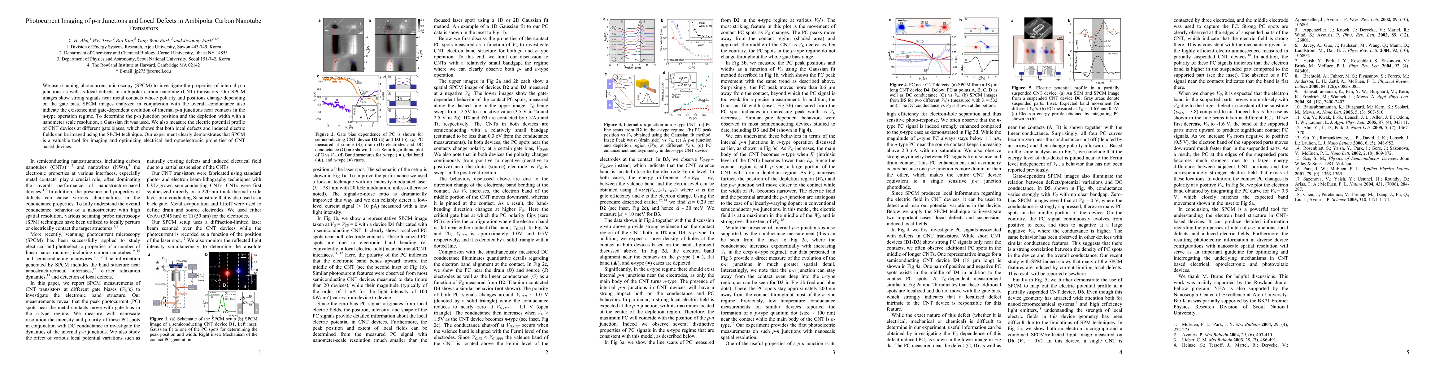 This paper uses scanning photocurrent microscopy (SPCM) to investigate p-n junctions and local defects in ambipolar carbon nanotube transistors, revealing gate-dependent junction behavior and defect imaging, highlighting SPCM's potential for optimizing CNT devices.