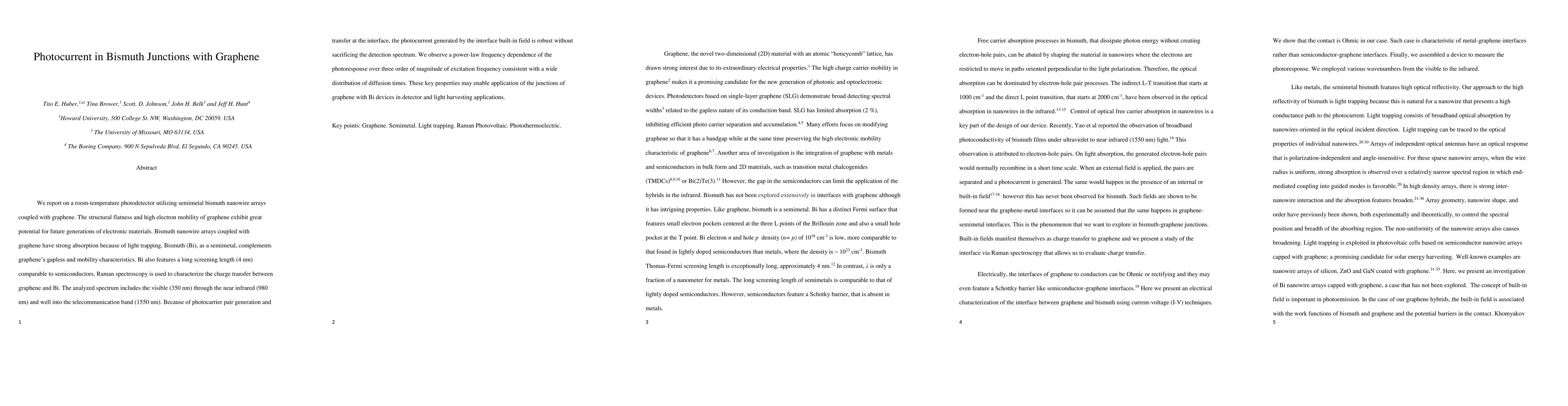 Researchers developed a room-temperature photodetector using bismuth nanowire arrays coupled with graphene, demonstrating high absorption and robust photocurrent generation.