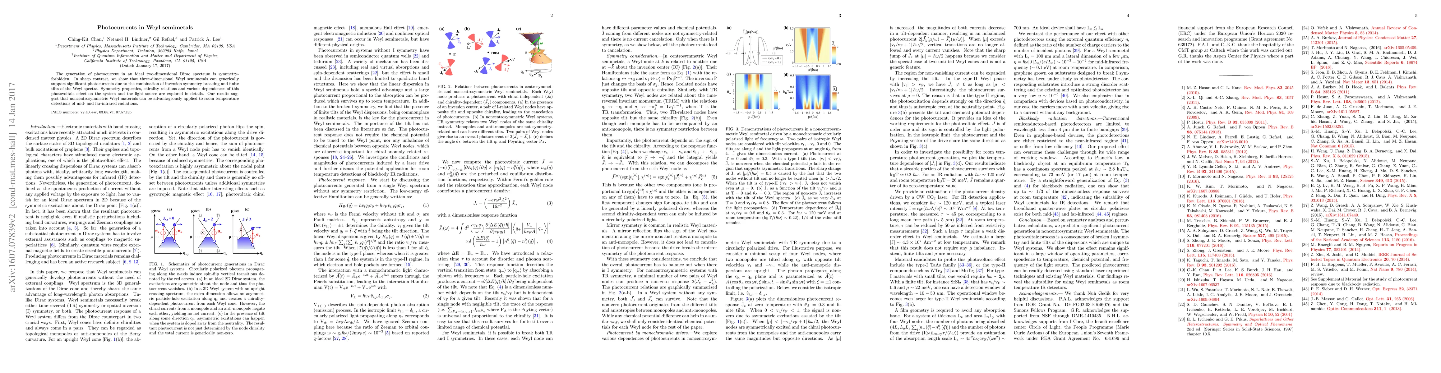The generation of photocurrent in an ideal two-dimensional Dirac spectrum is symmetry-forbidden. In sharp contrast, we show that three-dimensional Weyl semimetals can generically support significant photocurrent generations due to the combination of inversion symmetry breaking and finite tilts of the Weyl spectra. Symmetry properties, chirality relations and various dependences on the system and light sources are explored in details. Our results suggest that noncentrosymmetric Weyl materials can be advantageously applied to room temperature detections of mid- and far-infrared radiations.