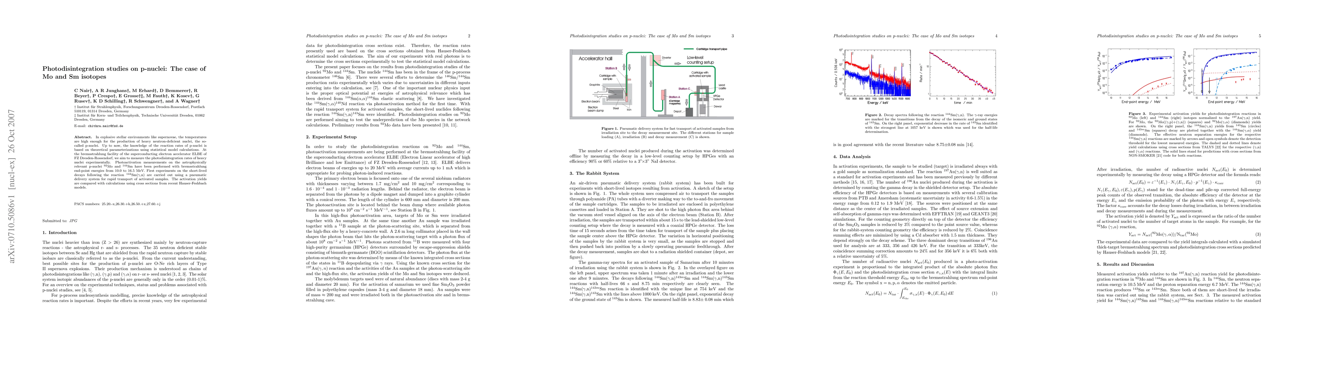 In explosive stellar environments like supernovae, the temperatures are high enough for the production of heavy neutron-deficient nuclei, the socalled p-nuclei. Up to now, the knowledge of the reaction rates of p-nuclei is based on theoretical parameterizations using statistical model calculations. At the bremsstrahlung facility of the superconducting electron accelerator ELBE of FZ Dresden-Rossendorf, we aim to measure the photodisintegration rates of heavy nuclei experimentally. Photoactivation measurements on the astrophysically relevant p-nuclei 92Mo and 144Sm have been performed with bremsstrahlung end-point energies from 10.0 to 16.5 MeV. First experiments on the short-lived decays following the reaction 144Sm(gamma,n) are carried out using a pneumatic delivery system for rapid transport of activated samples. The activation yields are compared with calculations using cross sections from recent Hauser-Feshbach models.