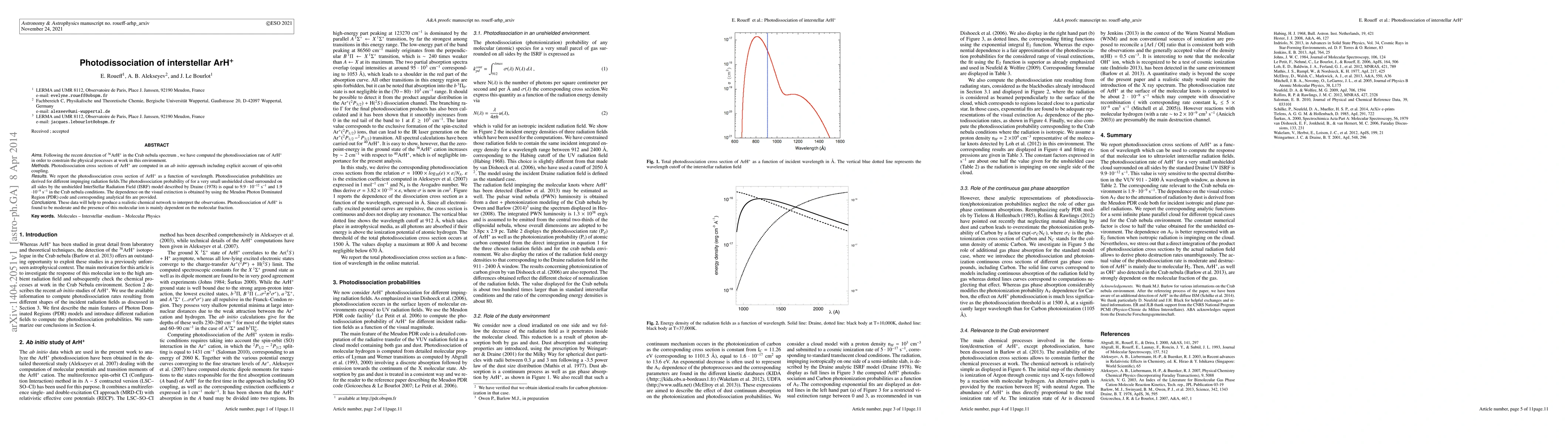This study computes the photodissociation rate of ArH+ in interstellar environments, revealing its dependence on radiation fields and visual extinction. The findings provide essential data for constructing chemical networks to interpret observations of molecular ions in the Crab nebula and other regions.