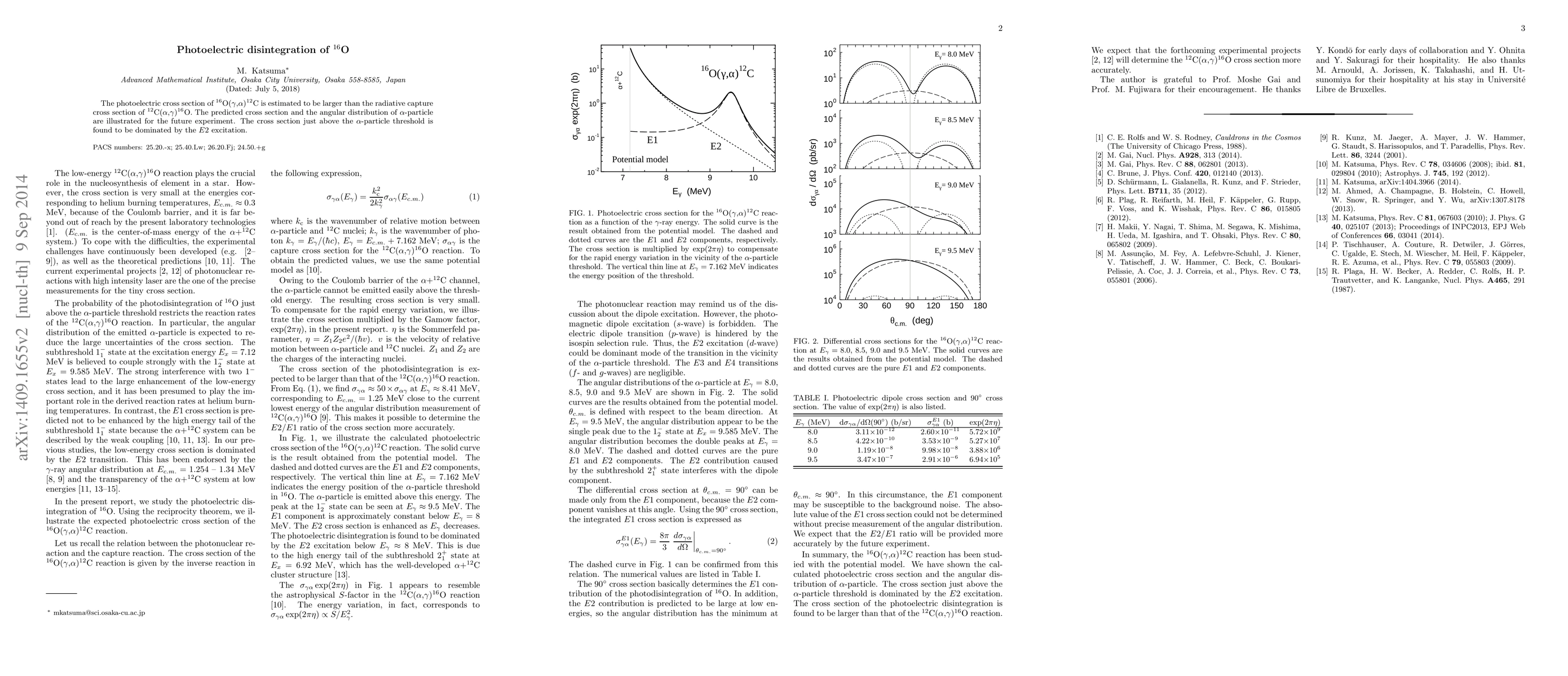 Researchers estimate a larger photoelectric cross section for 16O disintegration via gamma radiation than the radiative capture cross section of 12C disintegration via alpha radiation. The study predicts a dominant E2 excitation above the alpha-particle threshold.